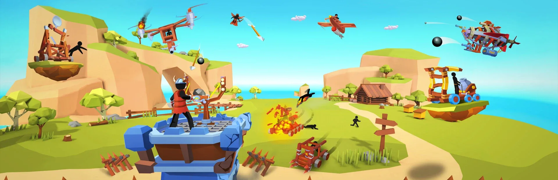Game about hero in castle siege, vs stickmans with catapult and archers with bows and arrows.