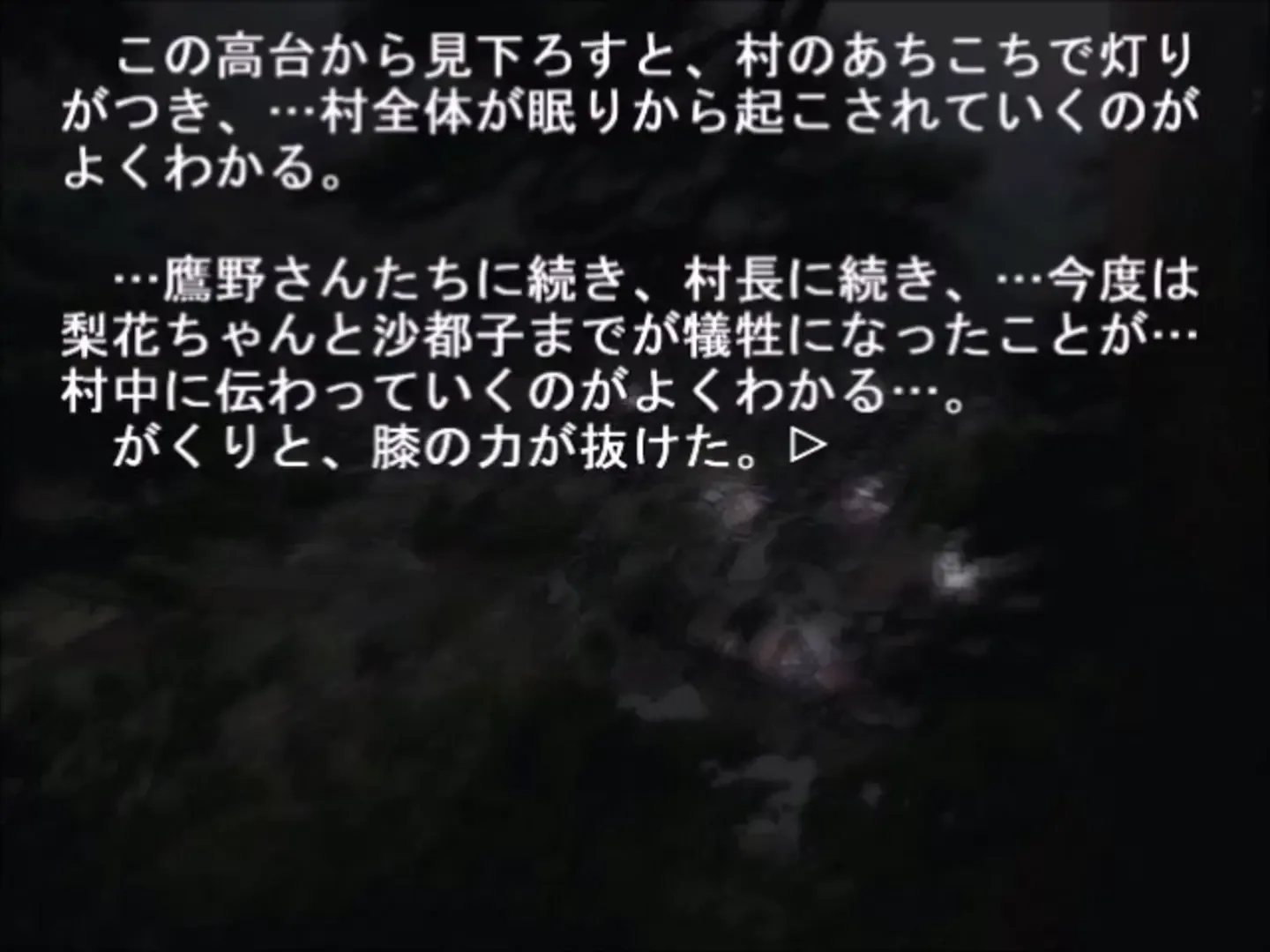 Keiichi wins a game tournament and gives his prize, a doll, to Rena stating that Mion will not be interested in such girly things, though Mion is actually rather hurt that Keiichi thinks about her that way, though she pretends not to mind.