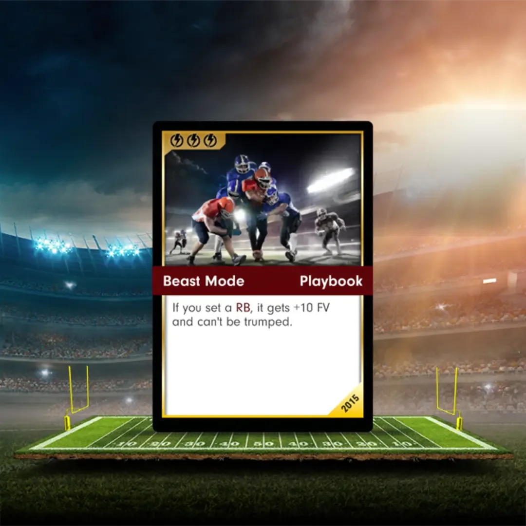 Each Dynasty match is an electrifying, head-to-head game of NFL football on the gridiron! Created for Fantasy Football and CCG fans alike, Dynasty combines the real-world stats and player drafting of Fantasy Football with the exciting gameplay and strategy of video games! Draft players and powers from a set of over 350 cards to supplement your pre-built Starter Decks. Devise plays and strategies to build an unstoppable passing offense or the ultimate shutdown defense.