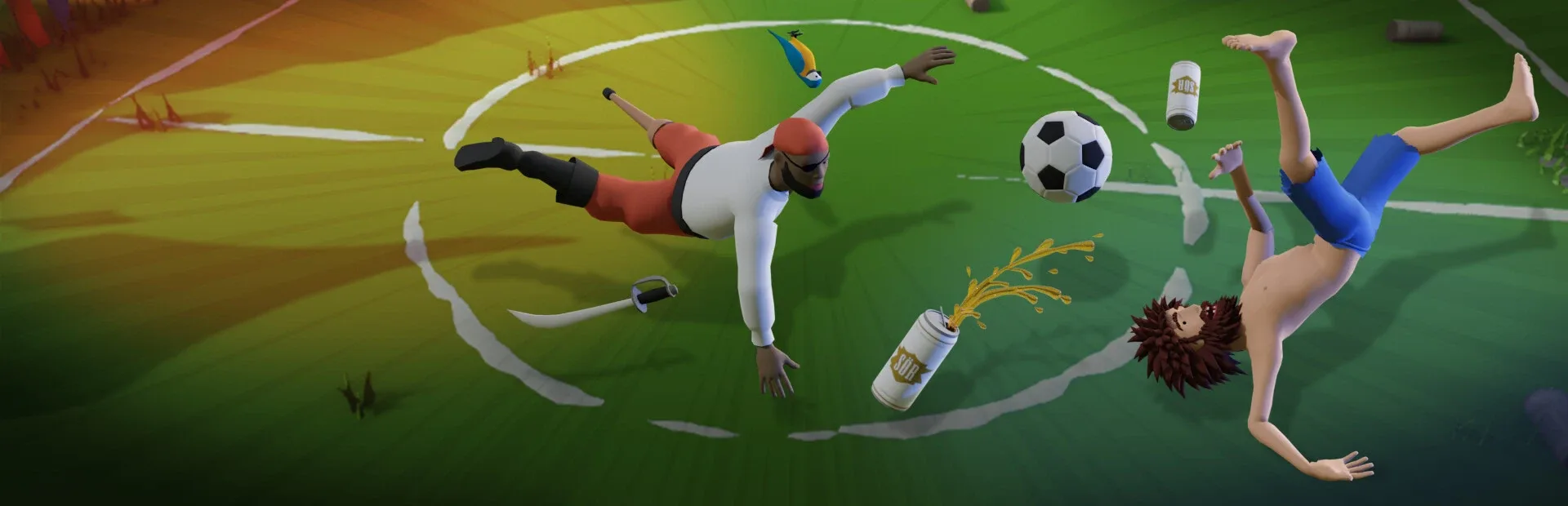Ever wanted to get drunk, play football (soccer), and not worry about the medical bill later? Do you hate animation and love physics? Then here's some physics-based sports action for you and your friends. Play locally or remotely. Move your feet, but don't break the sticks on your controller.