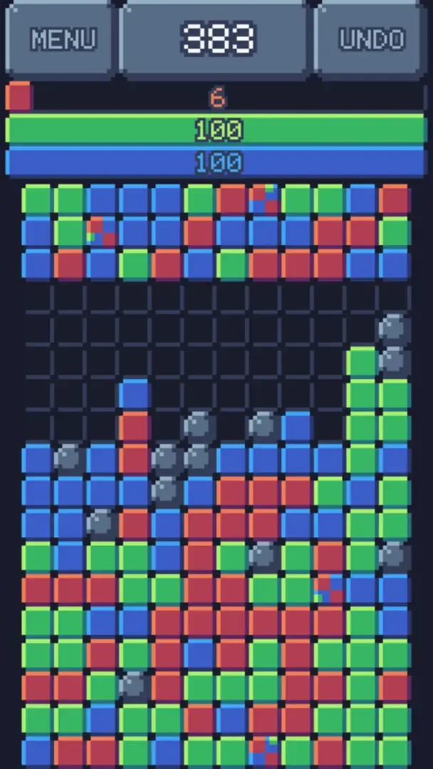 Select column, drop block and see what happen. Fill bars above to explode rocks. Get the highest score you can.