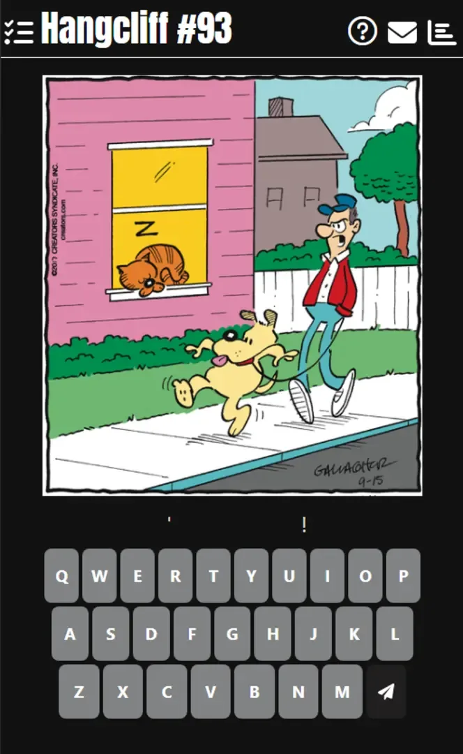 A daily word game where players try to guess the caption of a comic panel, Hangman style.