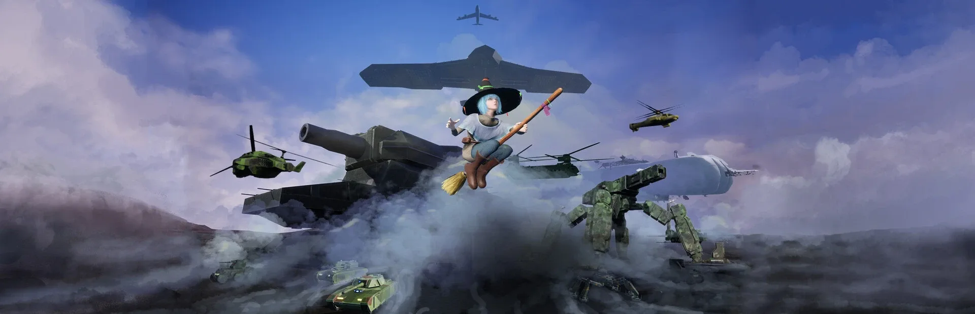 A flight combat game where you play as a witch in the year 2058, pitting your magic against the US military as you try to survive in this story and go for the good ending. Fight swarms of drones, tanks, aircraft, massive bosses, and other futuristic military equipment in this challenging story.