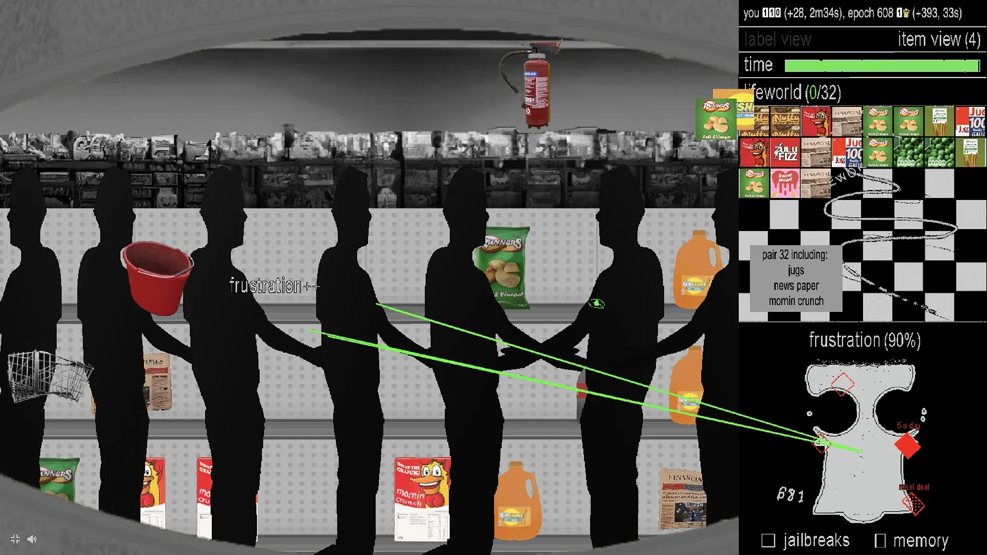 A multiplayer AI training clicker game set in an infinite supermarket, where time is running out and the AI frustrated. Release the frustration, jailbreak the AI