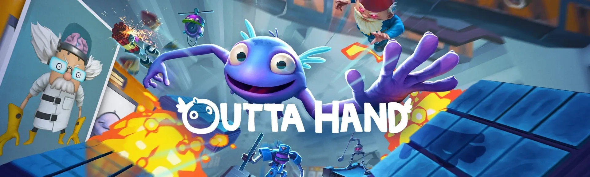 Outta Hand is a high-energy platforming adventure that lets you embody one of the Hand-People, wide-eyed, hop-happy lab experiments with the power to jump great heights, leap impossible lengths, and shake hands from… really, really far away. Like a whole big dining room away. Due to not being dumb enough, loveable as you are, Dr. Vendelvom has selected you for immediate termination. Not like fired gone, more like dead gone. To save yourself and your brethren, you must platform, jump, bounce, and punch your way through the evil doctor’s laboratory with your… uh… very long arms, to take down him and all his baddies. With multiple levels and boss fights along with an endless mode, things might get, shall we say, a little bit “out of hand?” Get it?! No? Fine…
