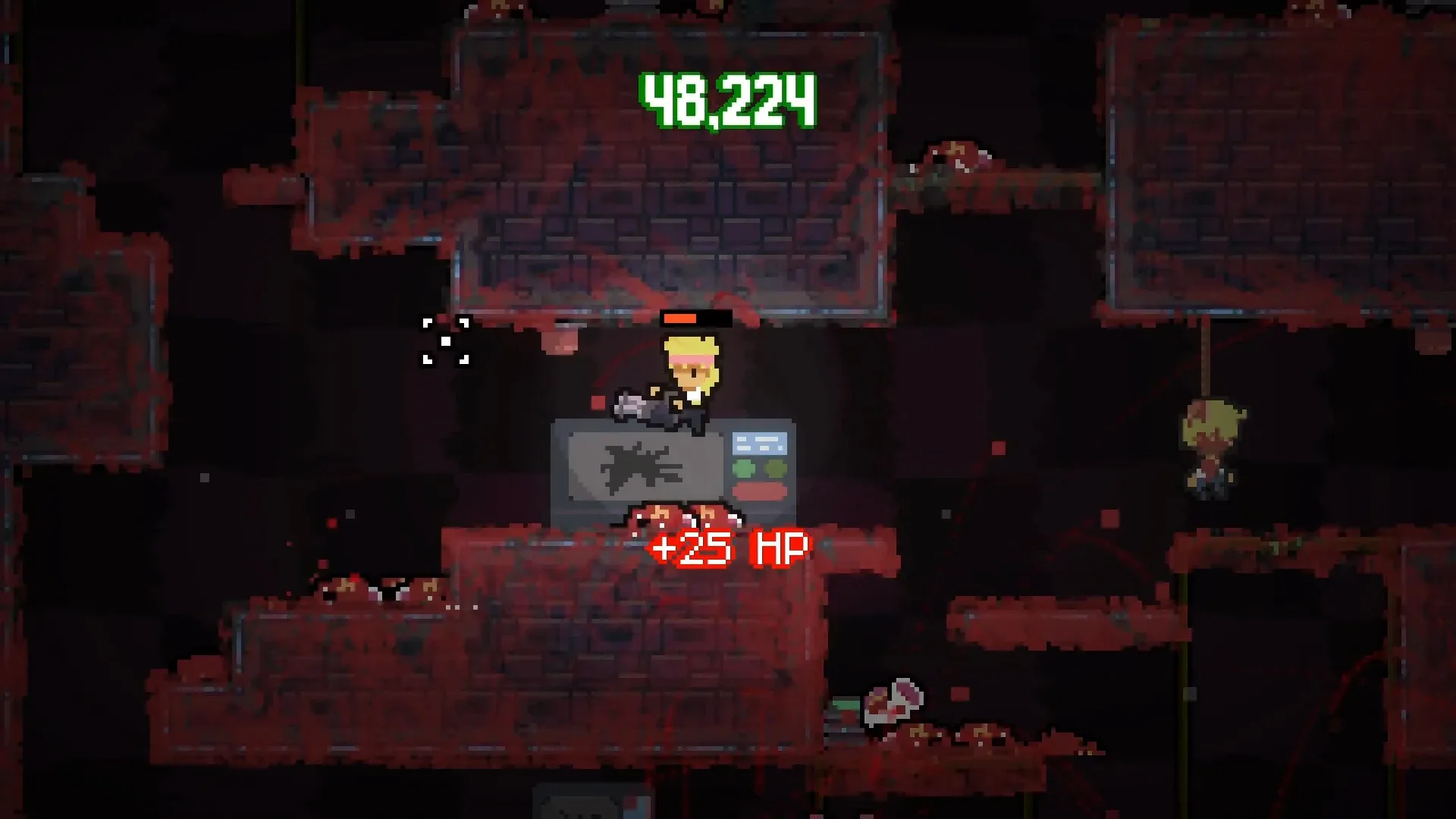 An ultra-violent platformer arcade shooter with tons of guns, metal music, juicy gameplay, dumb one-liners, dark humor, and a freak-ton of spicy ketchup. Hell yeah.
