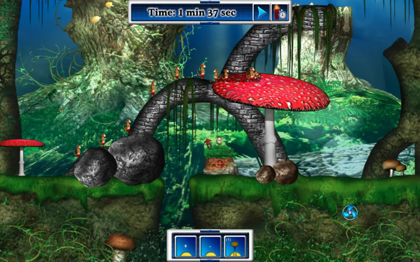 Lemure is a game in the style of Lemmings. You have to rescue the lemurs from any dangers like mountains, icebergs and catapults. For the rescue you can give out several abilities to the lemurs like climbing, digging, building bridges, highspeed-running and so on. In each level you have got a limited number of each ability you can give to the lemurs. So you have to think quick and exact which lemurs should do what, before you let them start.
