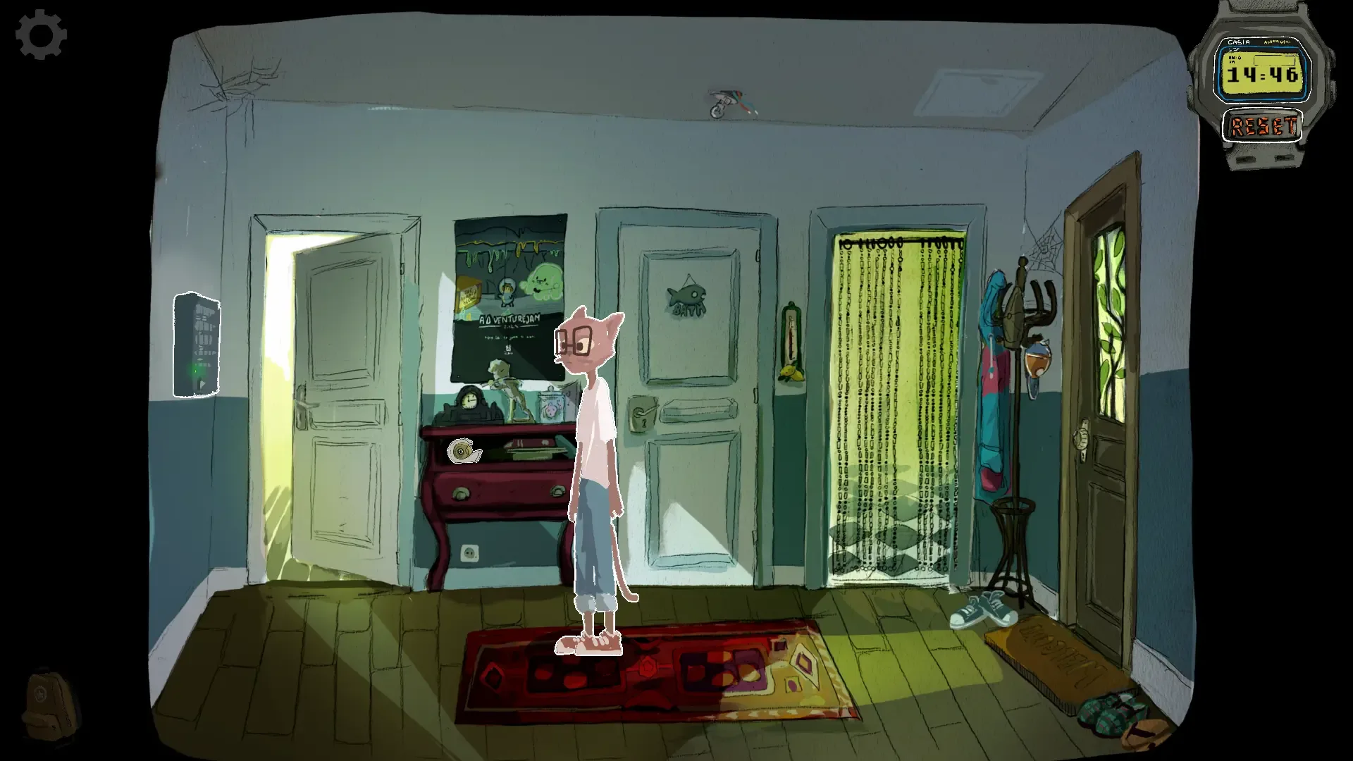 When Pixel learns that author T. T. Hunter has killed himself, he’s devastated. Now he might never know how his favourite book series ends! So, he does what any inventor cat would do: he builds a time machine, to travel back to the novelist’s final hours, in hopes of preventing the tragic act. But things are never that easy. In this latest addition to the Inspector Waffles universe—created in two weeks for Adventure Jam 2023—help Pixel, along with his flamingo pal JayJay, to solve time travel puzzles, avoid paradoxes, and save the day for literature fans everywhere!