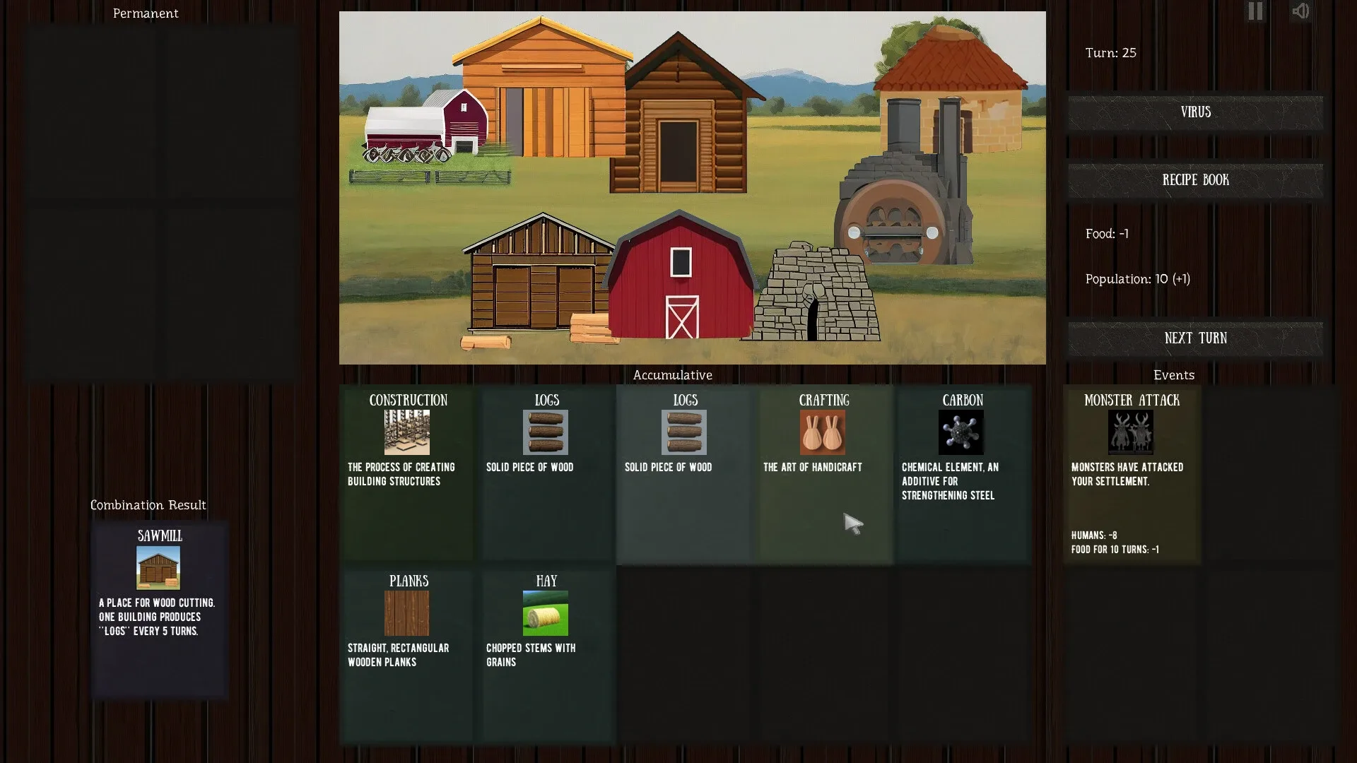 Village & Monsters is a card game that challenges you to develop a human settlement as well as viruses. The settlement is periodically attacked by monsters, but the monster population is held back by a virus. The goal of the game is to reach a population of 100 people and not let the virus die.