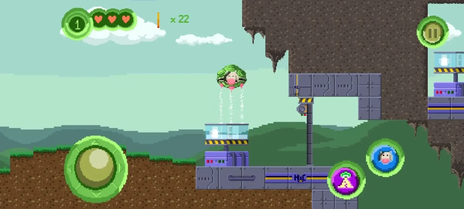 Take control of the Kurmatron, a symbiotic creature like a turtle shell. Abduct animals and gain different powers to take on an evil corporation. A retro, eco-friendly game for the whole family.