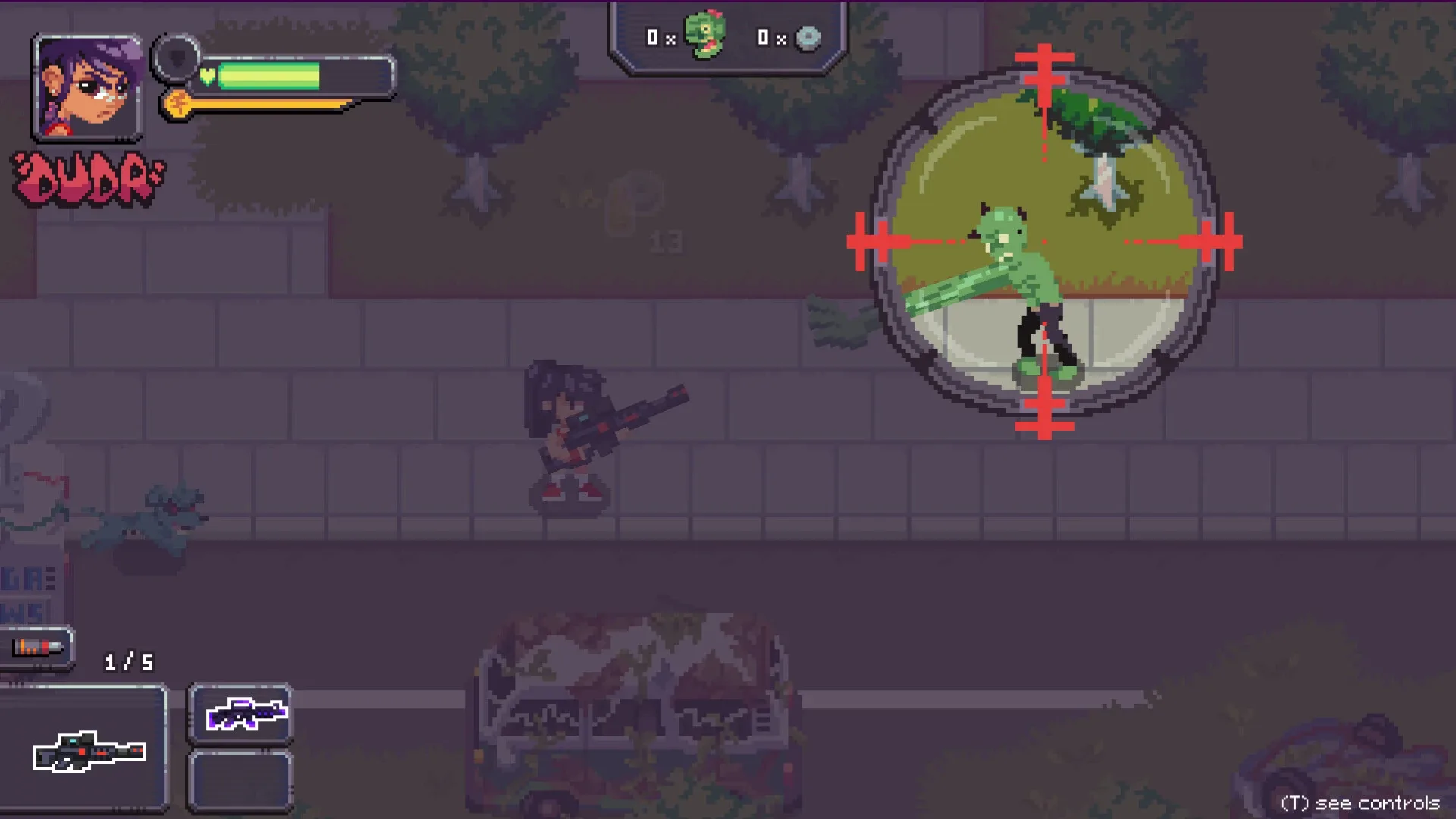 Expect blasts of green zombie goo painting the screen in this top-down shooter packed with crazy guns that blow the heads off some… freaky zombies. Your mission is simple: graffiti the whole city before these mutants dog-pile you.