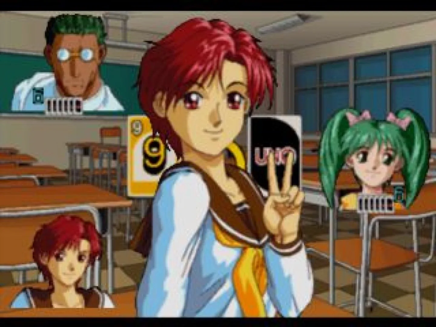 A Japanese game adaptation of the Mattel card game Uno, featuring a story mode set in a high school's Uno Club.