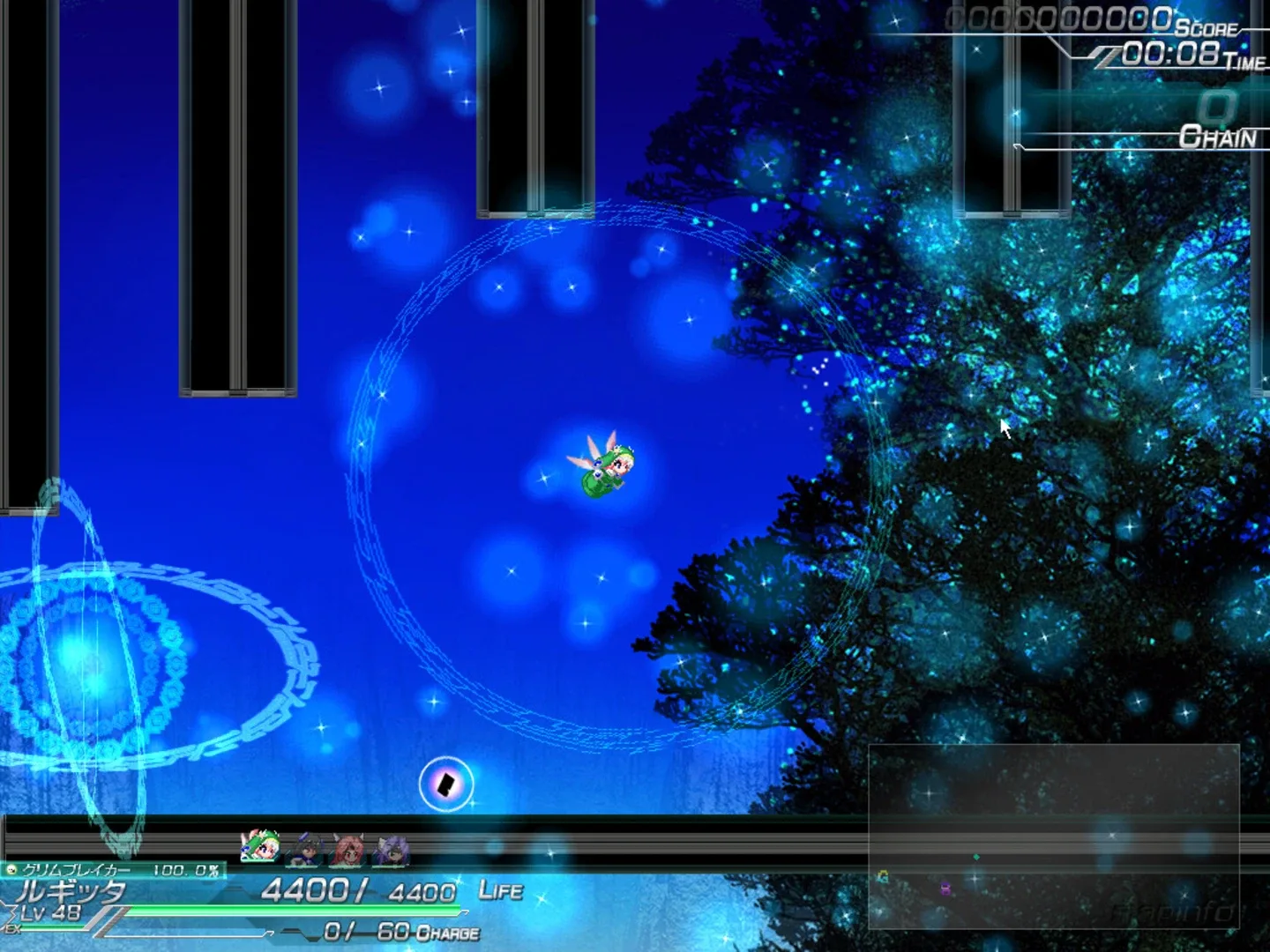 キャラをじっくり育てながら広い世界を冒険する――。 そんなSTGがあってもいいじゃないか!! …というのがこのゲームのコンセプト。 ブレイクによって敵弾を消すことができ、 レベルと装備で強くなるので、STGが苦手な人でも凶悪弾幕ボスを間違いなく倒せるようになります!