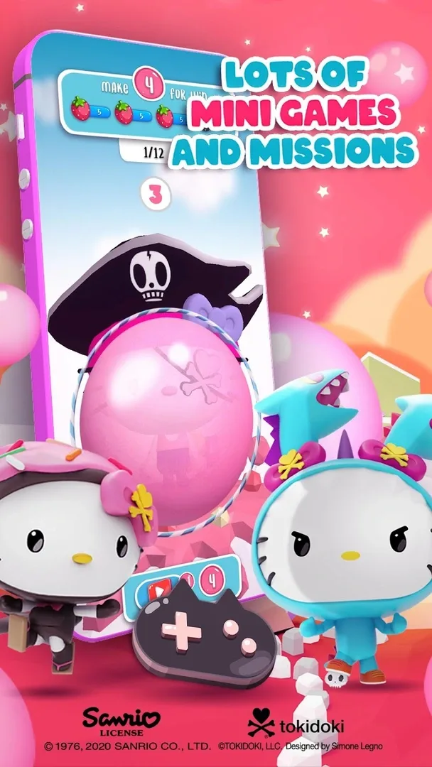 A tokidoki and Hello Kitty match 3 puzzle game.