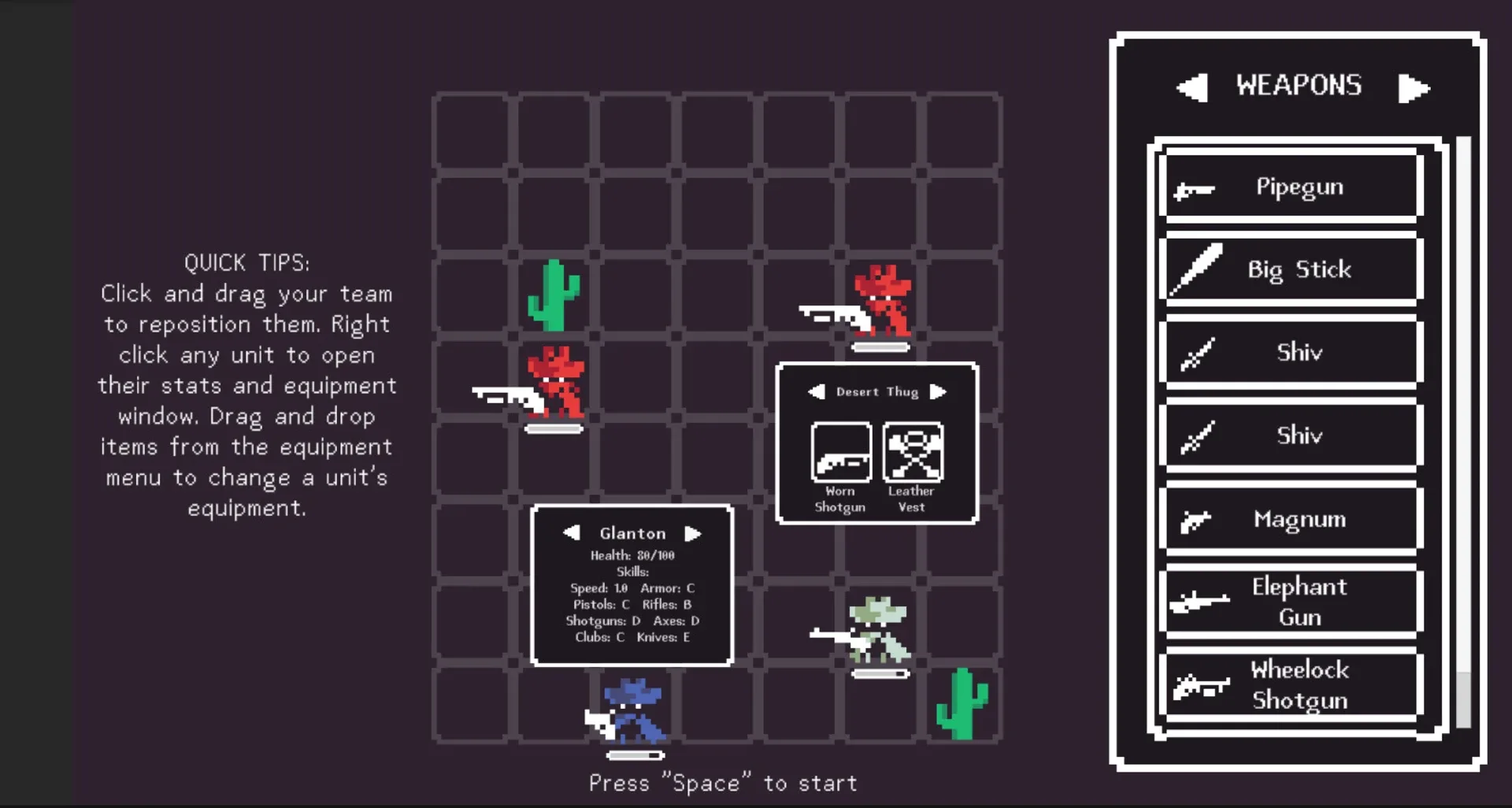 A squad-based strategy RPG set in an alternate old west. Build your crew and manage their skills and equipment as you fight your way through bandits and beasts alike in a procedurally-generated valley to reach the promised land of WestHalla.