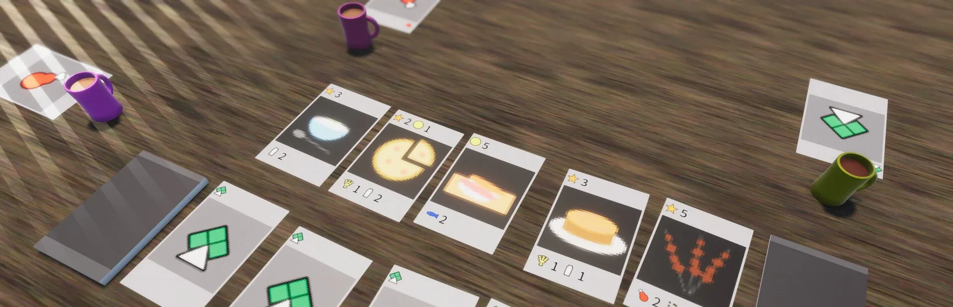 CookingPix is an online cooking card game for 1-5 players.You can enjoy simple yet deep strategy building and bargaining.You can play many times in a short time, so even people who don't have time can enjoy it easily!
