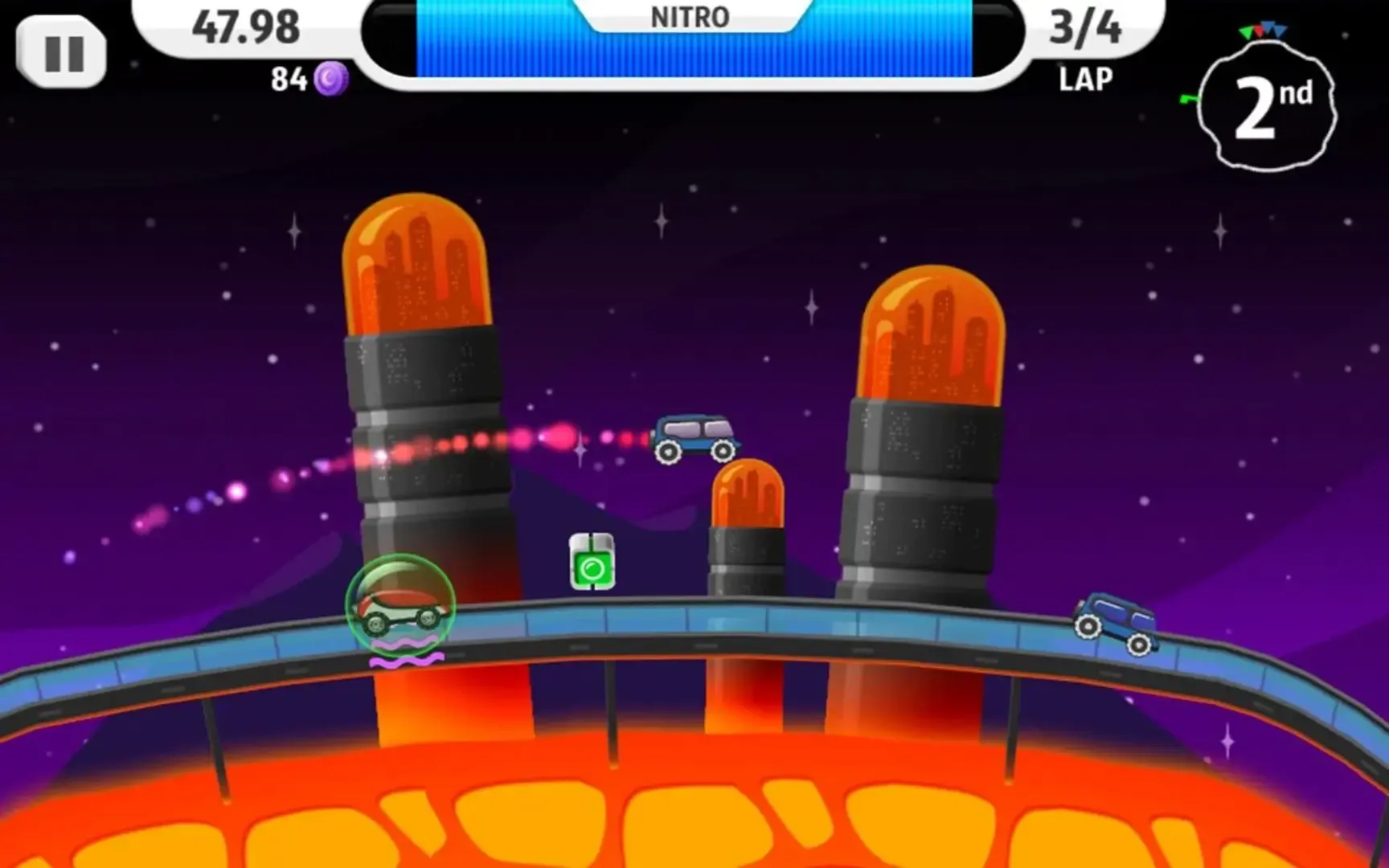 Strap on your moon boots and fire up your nitro boosters because the real space race is about to begin!! Shoot, dodge, blast, and nitro boost your way through the solar circuit. Achieve the ultimate prize and conquer the solar system by beating any competitor in your way! From the creators of Super Stickman Golf.