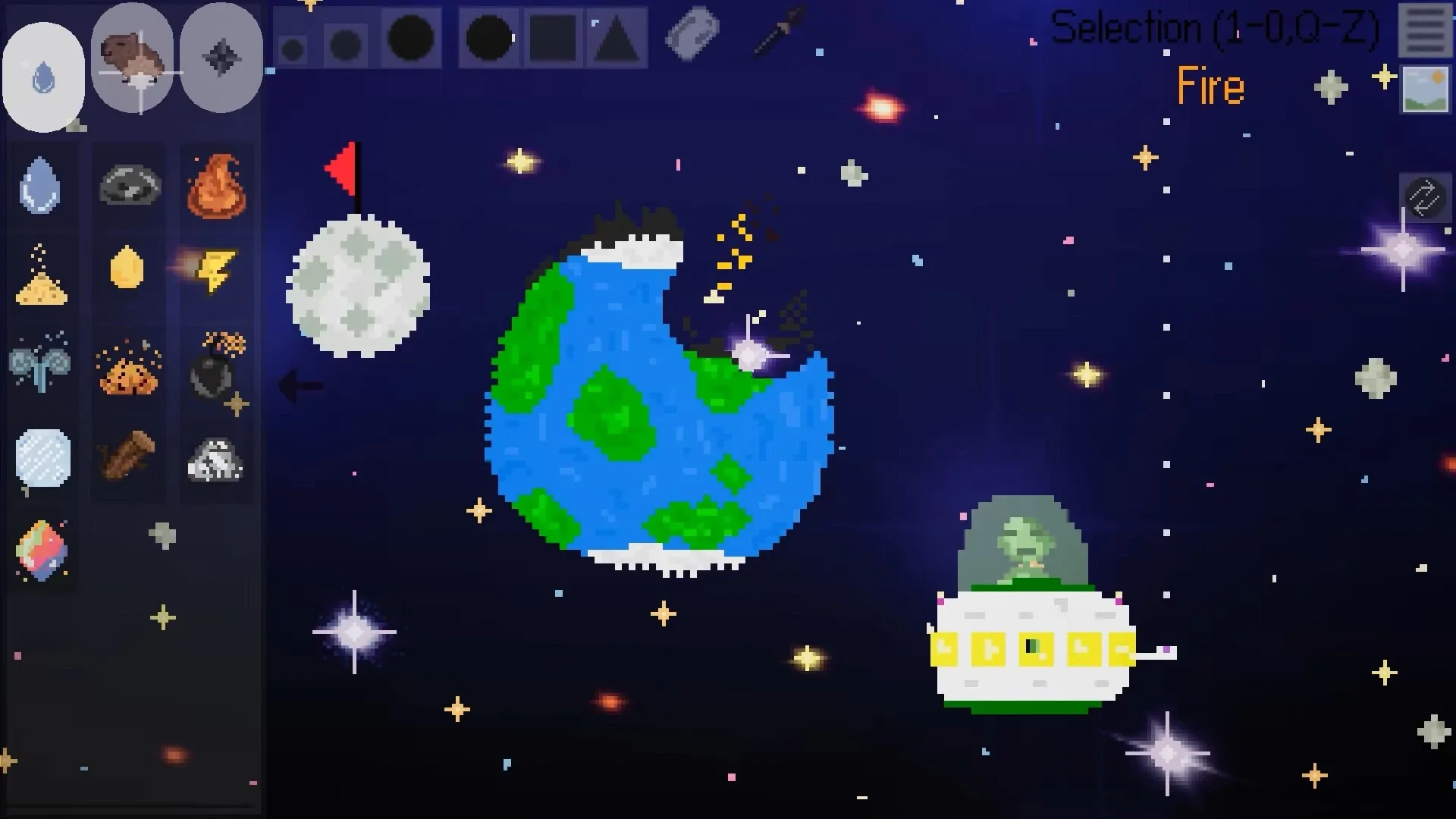 Build, experiment, and share in Squares and Stuff, a pixel-retro sandbox game inspired by classic "falling sand" games. Unleash your creativity in an open-ended world filled with sandbox elements like water, paint, fire, sand, animals, humans, zombies, and a controllable 2D platform character.