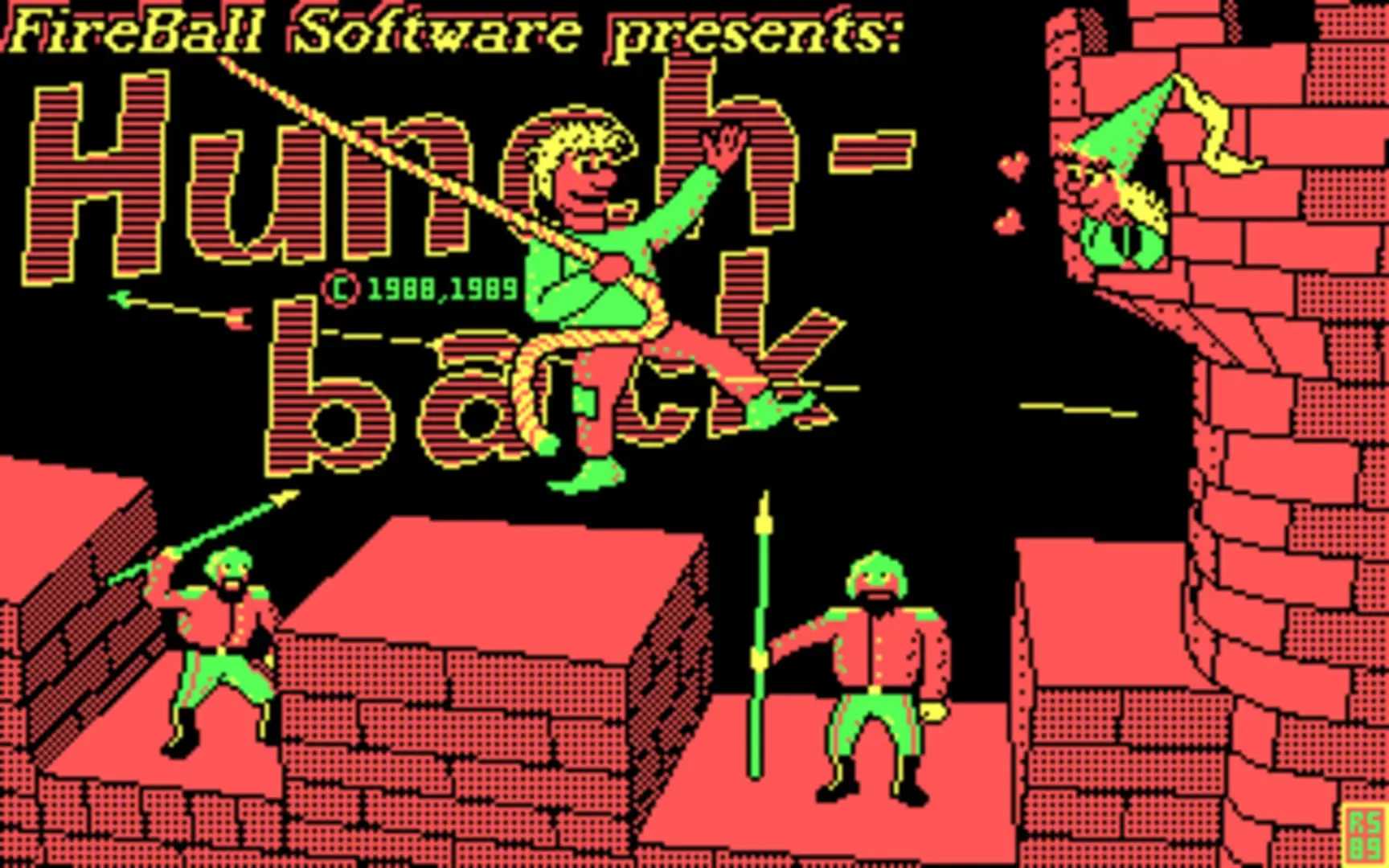The game is set on a castle wall. The player must cross the screen from left to right avoiding obstacles in order to ring the bell at the far right. Obstacles include pits which must be swung over on a long rope, ramparts which must be jumped (some of which contain knights with spears) and flying fireballs and arrows (to be ducked or jumped). Eventually, after completing a number of screens, the player must rescue Esmeralda. If this final screen is completed, the game begins again at a faster speed.