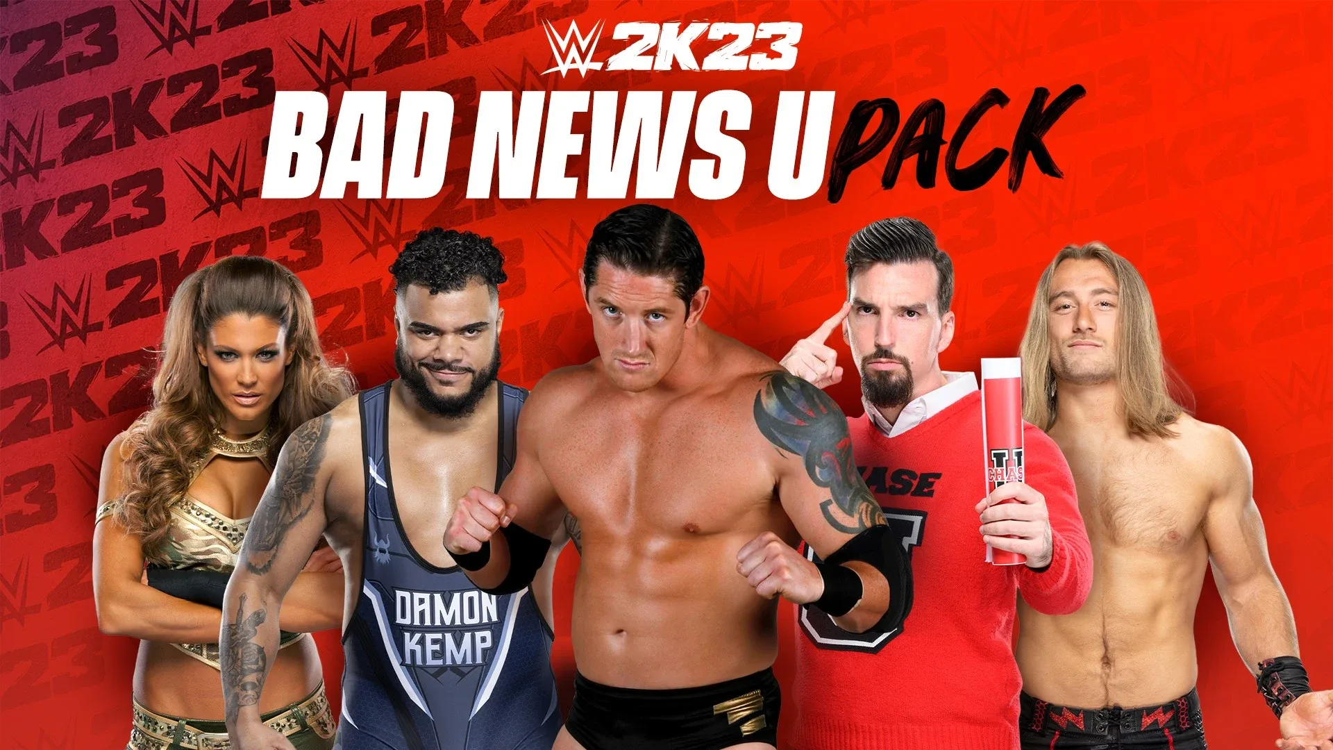The Bad News U pack includes Wade Barrett & Eve Torres, as well as NXT Superstars Damon Kemp, Andre Chase, & Nathan Frazer. Each playable Superstar comes with their own MyFaction card. The Bad News U Pack is included with the WWE 2K23 Season Pass.