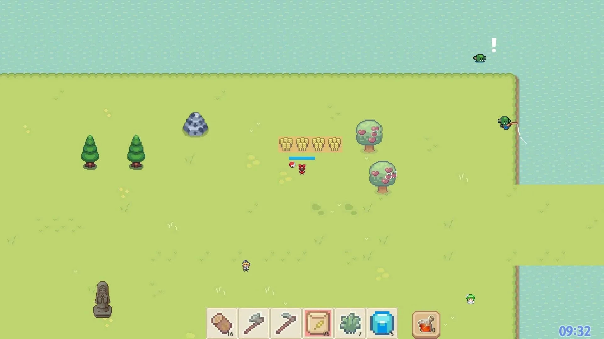 Go on a trip and find a treasure box And Farming! Please combine items or talk to NPCs to solve their difficulties You can meet various bullet hell patterns!