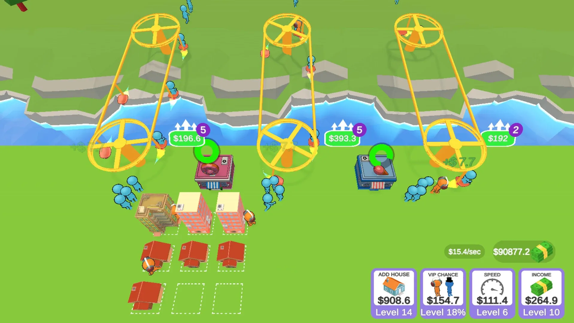 Build platforms to transport people, increase your customer population by buying and merging houses. Advance through levels.
