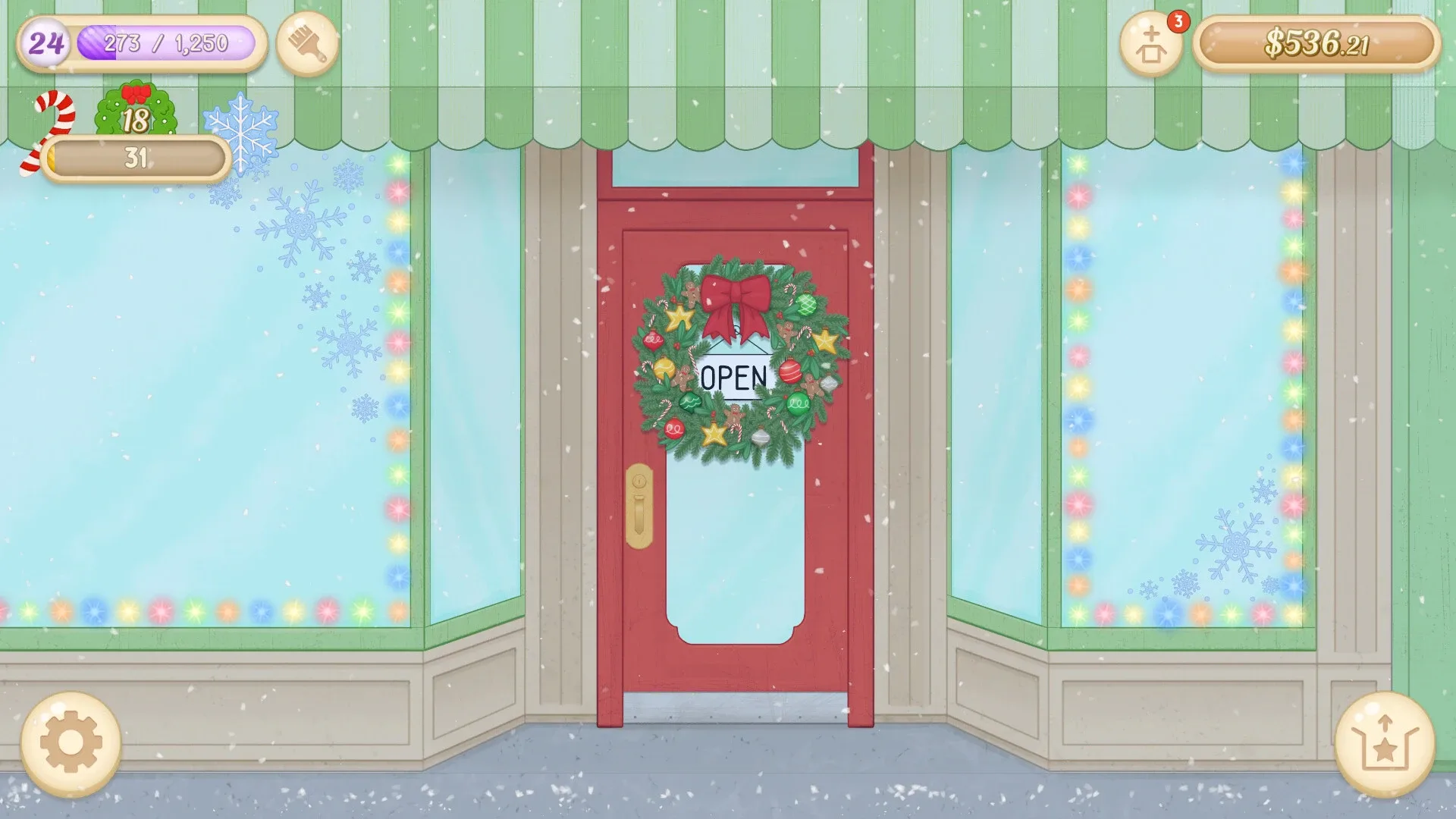 Bring Christmas cheer and a cozy winter vibe to your bakery this holiday season. Bake festive recipes, decorate your bakery for the holidays, hand out candy canes and receive gifts from your customers!