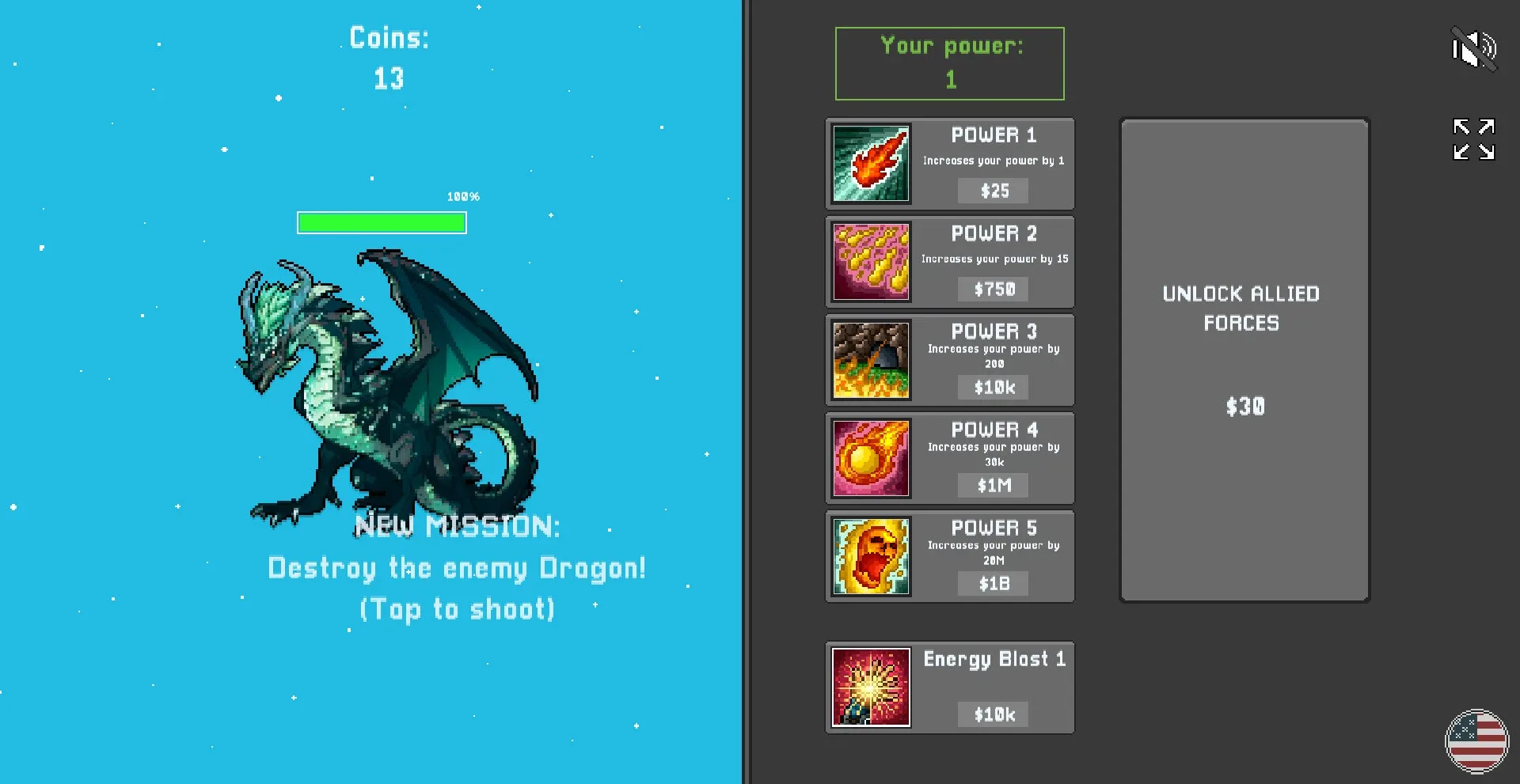 The land has been overrun by evil dragons It needs a leader to bring peace to the land. Start by clicking on the dragon to kill them, and collect coins. Spend that coin on your power and allied Heroes to get more damage. The more damage you deal, the more coins you will get.
