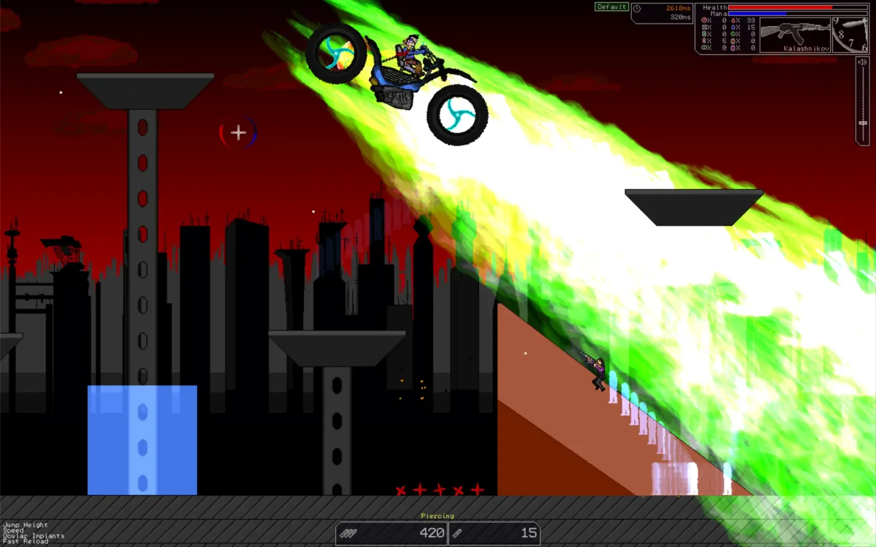 You are Kador, a heavily armed nano-augmented spell casting former agent of the Corset Timarchy. You navigate a psypunk future society of shifting alliances. Starting in the continent of Mass City. An overly ambitious action platformer more than a decade in the making!