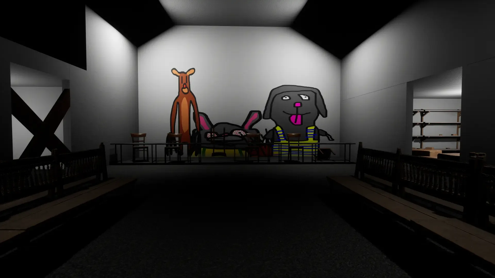 In this Game you follow the story of a man that is searching his wife and his kids. They all disappeared in an abondend indoor playground. This indoor playground is themed after the four seasons with its mascots named Sally Spring, Siggi Summer, Frederick Fall and Willy Winter. You need to break in this playground and explore it to find your children and wife ( with no keycards!!!). You get the help from your friendly winter stick. With that stick, you can create ice blocks on which you can jump on.