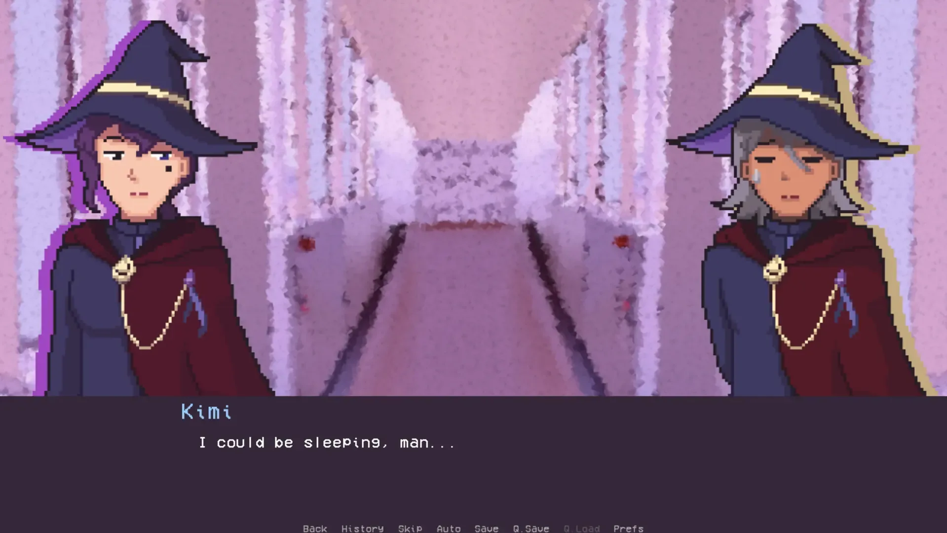 For A Reason is a sapphic visual novel set in a witch's academy setting featuring two playable characters and one route for each character. Talk to your crush, solve a mystery, and... drink some juice? Play as Jane Laguerre, a member of arts and performance club who doesn't have the guts to even walk on the stage, and help navigate her way to confess to her idol. Or play as Lora Wiley and have a cute totally-not-date with her 'friend' who is better than her in every way!