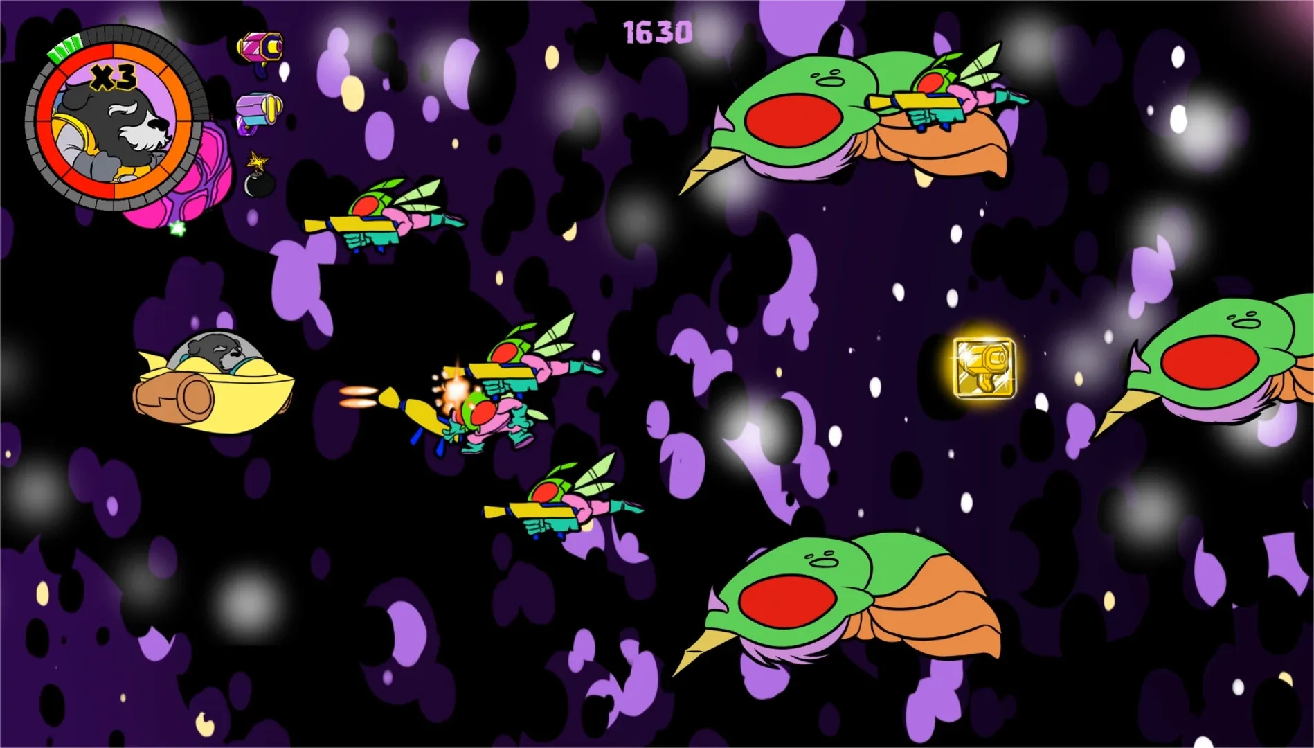 Space Dogo is a platform/adventure game. Moro is an old trained dog searching across the galaxy for her owner who has been kidnapped after some enemy attack to the Human Colony.