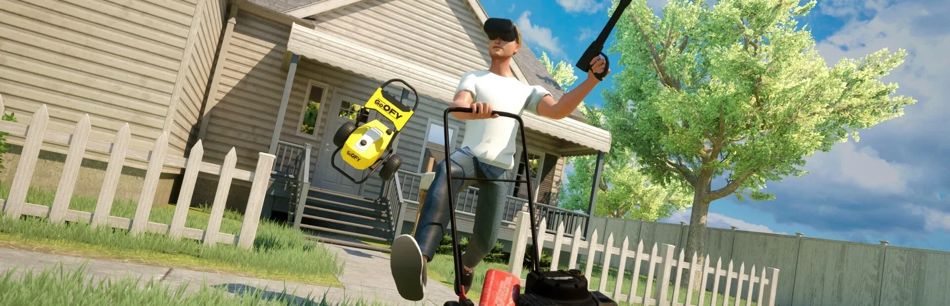 Clean up your virtual world with "Cleaning Time VR", a fun and immersive game that challenges you to clear away the clutter! Use your skills and special virtual tools to reign victorious as you scrub, wash, and mow your way to success.