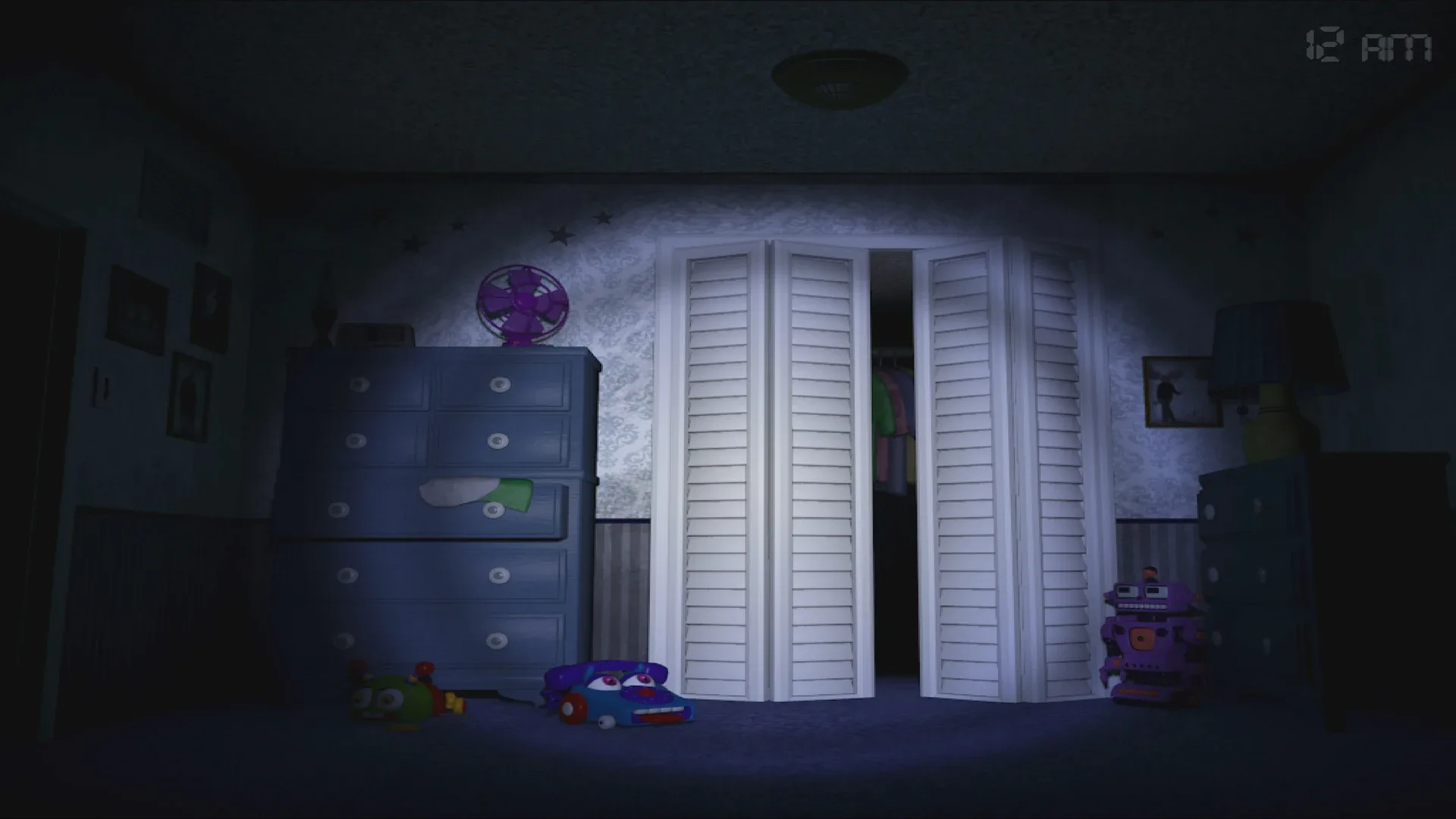 This time, the terror has followed you home. In this last chapter of the Five Nights at Freddy's original story, you must once again defend yourself against Freddy Fazbear, Chica, Bonnie, Foxy, and even worse things that lurk in the shadows. Playing as a child whose role is yet unknown, you must safeguard yourself until 6am by watching the doors, as well as warding off unwanted creatures that may venture into your closet or onto the bed behind you. You have only a flashlight to protect yourself. It will scare away things that may be creeping at the far end of the hallways, but be careful, and listen. If something has crept too close, then shining lights in its eyes will be your end.