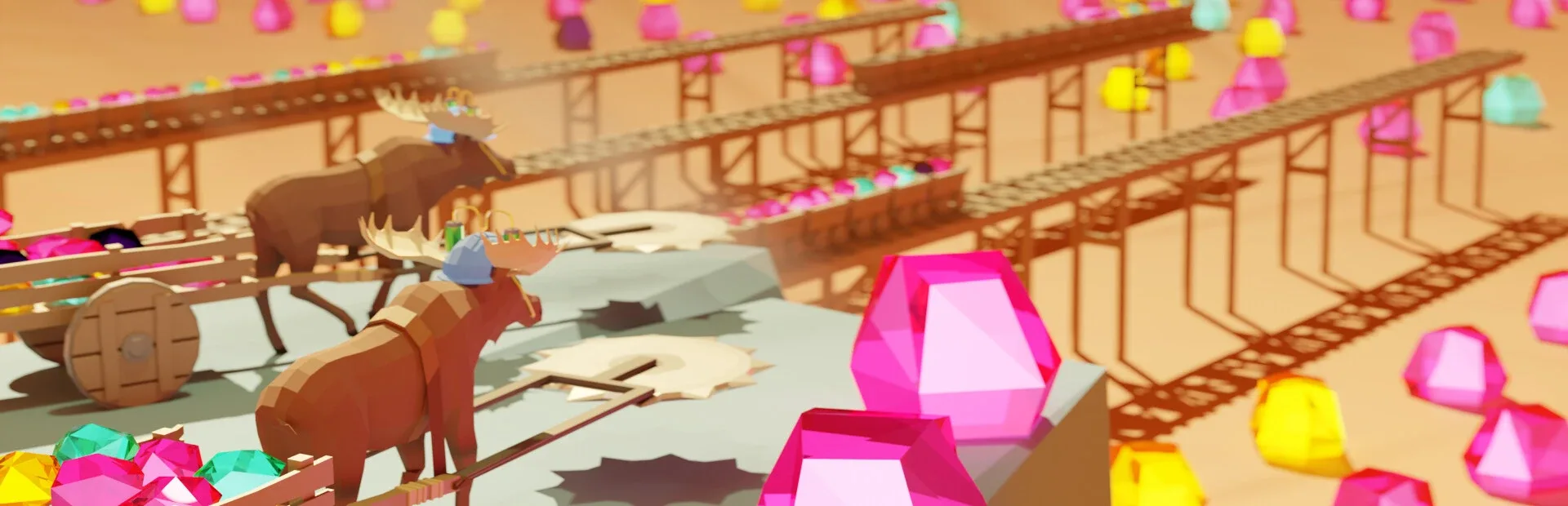 Take control of a mining operation run by moose. They mine and sell the gems. You need to decide where to spend the profits. Hire more miners and upgrade their gear. Buy new rails and minecarts to get deeper into the mine. The deeper you get the more valuable gems you will find.