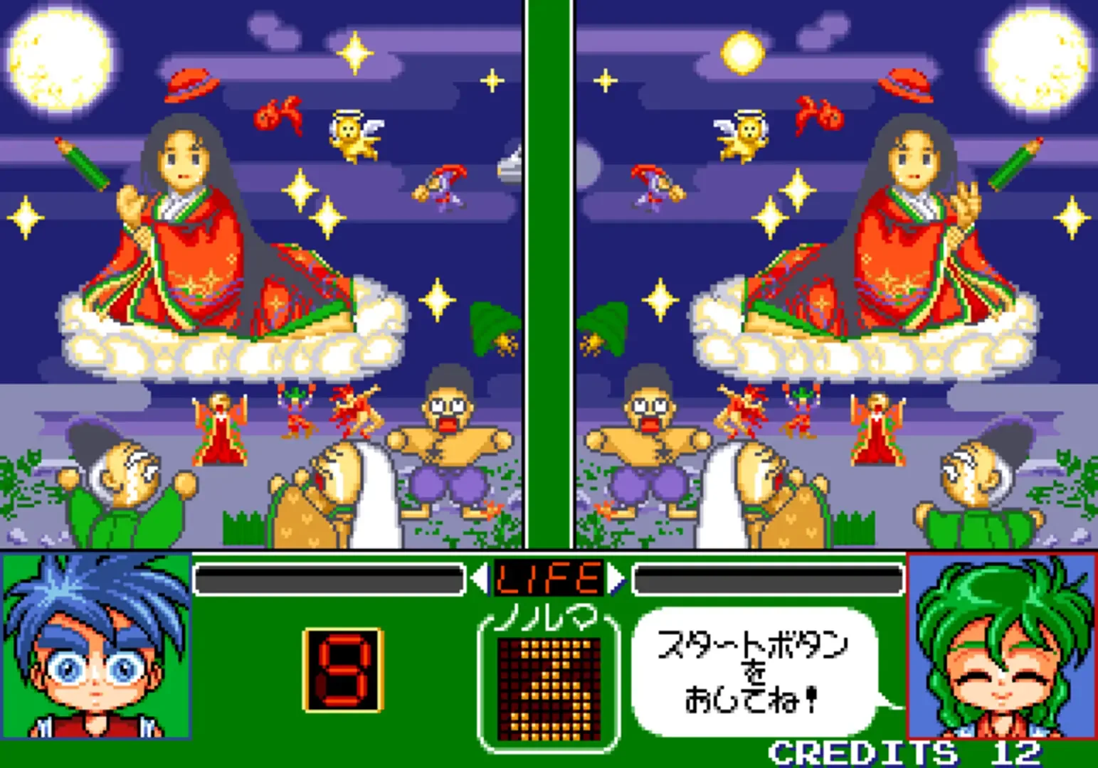 Magical Error wo Sagase is a two-player game where players go through a series of two pictures (some of them animated and scrolling) to spot the difference within a limited time. While waiting time slowly drains the player's health, making mistakes costs even more health. In between the multiple stages, the player does a bonus stage which restores health depending on how many points are acquired. As the game progresses more differences must be spotted to win each stage. Some pictures are based on fairy tales and notable stories.