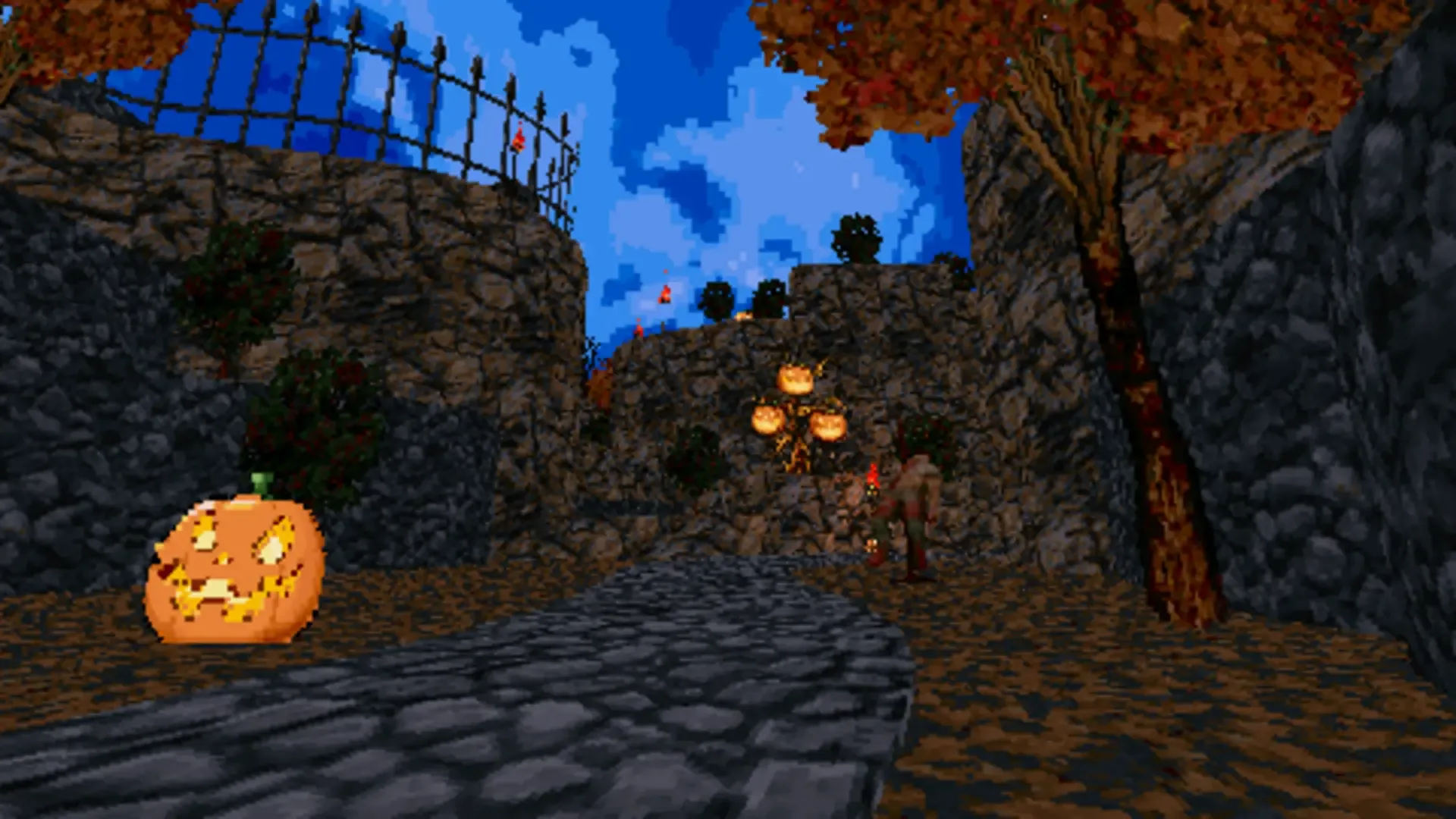 Pretty large very Halloween-themed map for Doom 2 for limit-removing ports. Features new spooky appearances for some of the enemies, although they are all functionally the same. The only exception is arachnotron who has smaller hitbox to fit his new sprites and also slower movement speed to compensate for that.