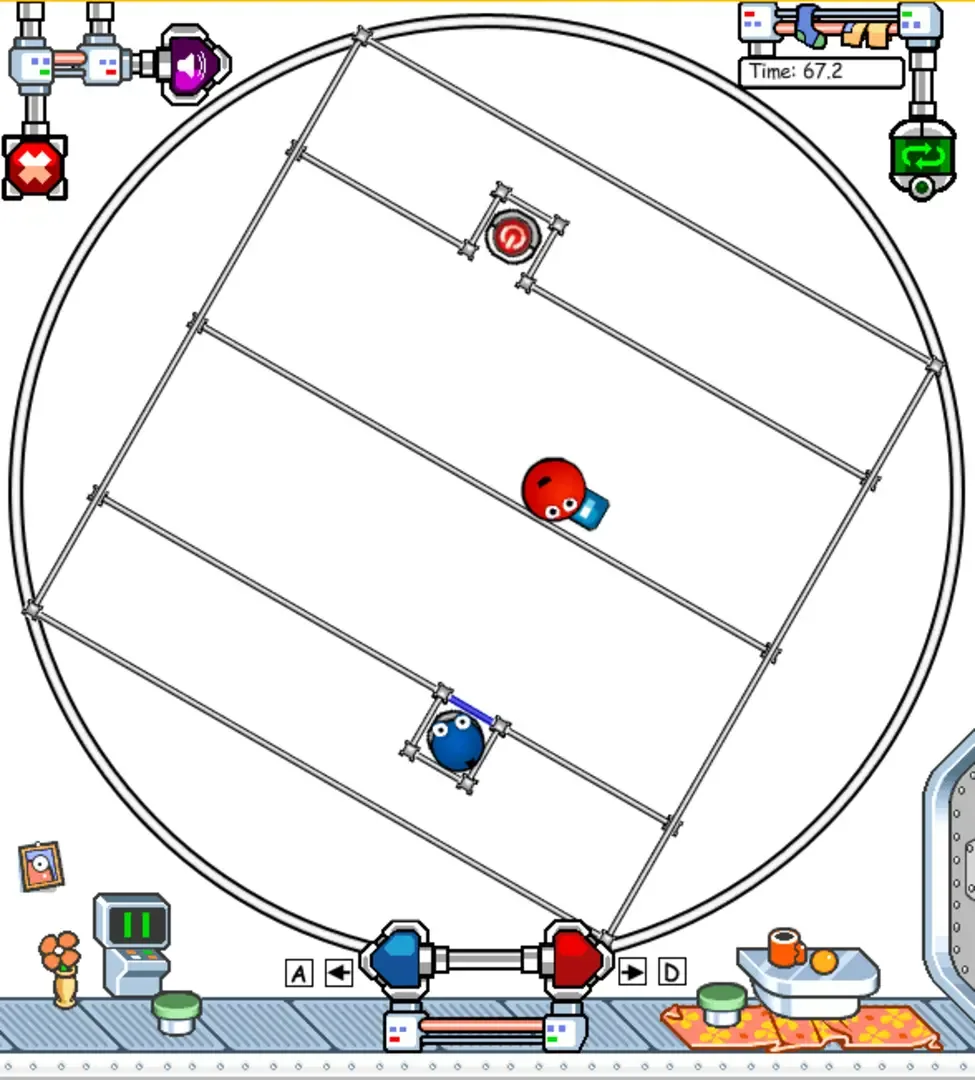 Control Wiz and Waz through a series of rotating mazes which will test your speed, logic skills and reactions as they attempt to fight off the twin enemies of BOREDOM and HUNGER!