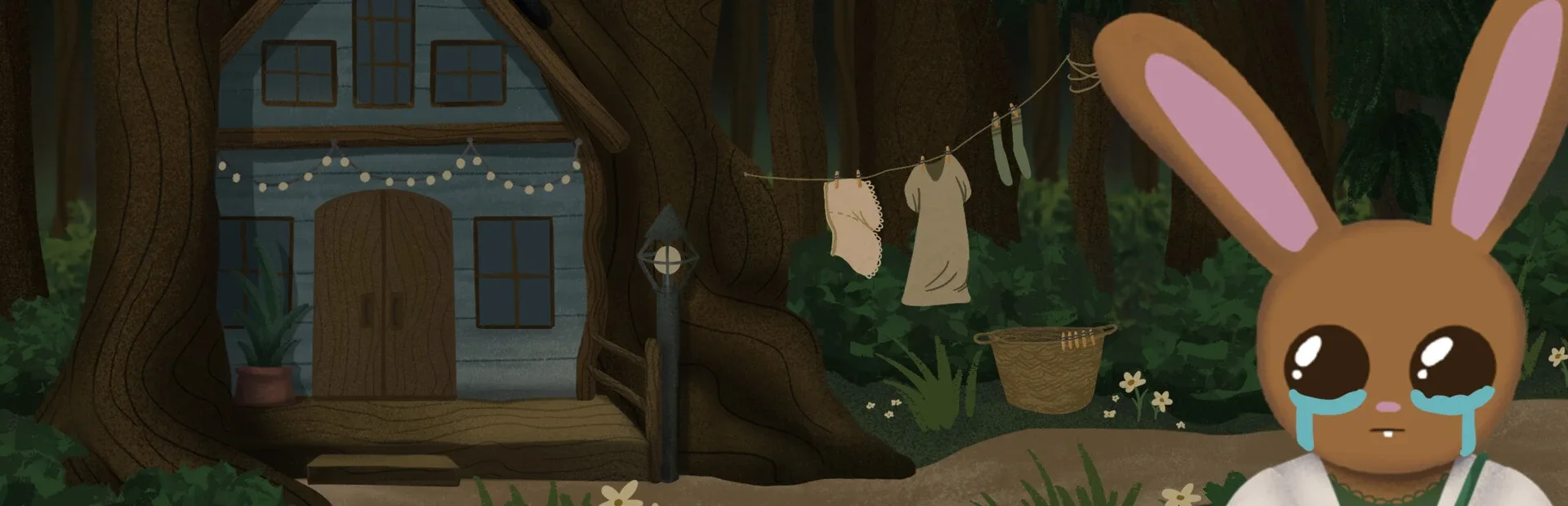 You are a very sad bunny. You cannot stop crying. You might have to drink something gross. You are Tulip. Wander through a storybook countryside, gather ingredients for a strange brew, and get to know your adorable animal neighbors in an odd quest to alleviate your incurable sadness.