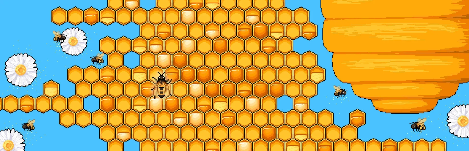 This is a game about managing a beehive. Collect resources from flowers to raise bees and expand the hive!