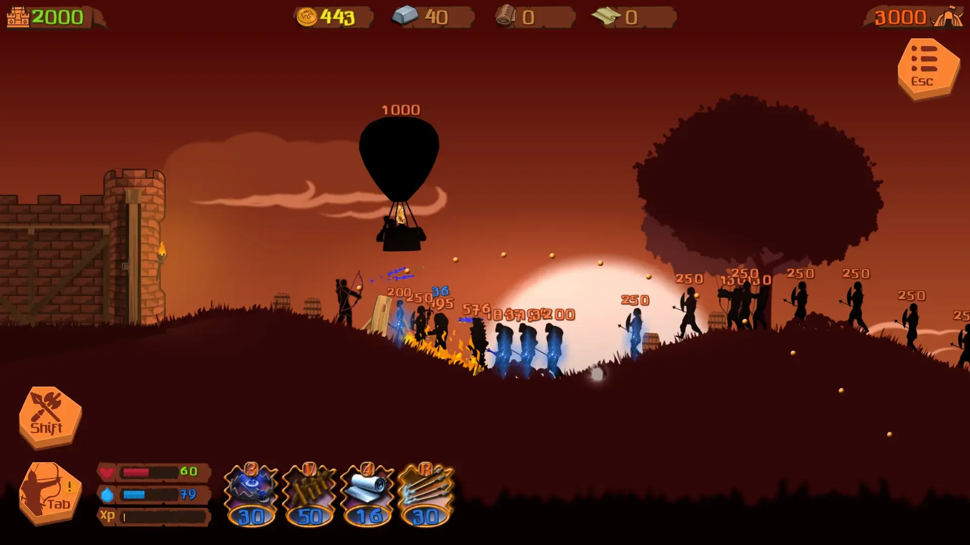 Once upon a time… My lord, our lands are attacked! Having been got out of naked women, accompanied with heart-rending servant’s shout, you harried up to an urgent audience with the King. Congratulations! Now you are in the head of the castle, country and motherland defense. Let your victory be swift and absolute… Either at least do not deep-six us all. It is not about your knowledge of the art of war (or your knowledge of anything else), you just thought it might be fun to shoot a bow at live targets. You can create a hero here according to your taste. For example, spending your роints on improvement of your hero's adroitness you can create a master of the distsnt battle with an opportunity to choose appropriate talents. Moreover, you can improve a hireling, who become the best support for you in the close battle. It's worth to say, that you can become a master of close battle by developing of strenght and improving protection and operating with snares.There is also a varient of manipulation with intelect. You can chose both a fire-ice-poisoned dart and an explosive or forrifications. Together with a complex game mechanics and the different branches of the hero, each passage may be unique.