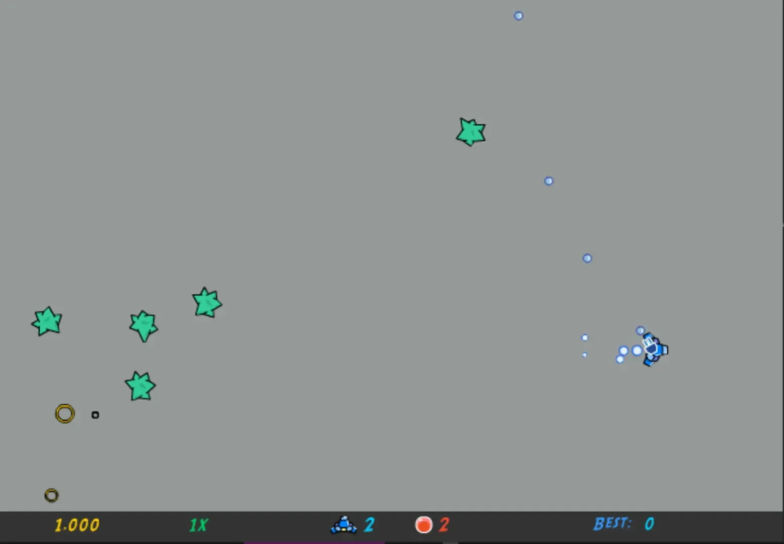 Fast-paced arena shooter with tons of different enemy types. You can play as one of two ships each with its own unique weapon to battle against vast amounts of baddies. The game also features upgrades and an achievement system.
