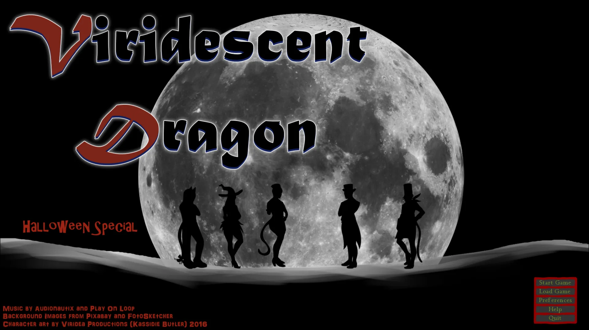 It's ALIVE!! This is the first Halloween Special for the Viridescent Dragon visual novel series! Join Charlotte, Seleste and Dawn as they try to throw a Halloween Party they'll never forget! (As this is a kinetic visual novel, it is straight-forward and you could just auto-play it like a movie if you'd like. I am considering adding choices in any future chapters/stand-alone novels.) If you haven't yet please check out Chapter 1 and Chapter 2! This game is in 1920 x 1080 resolution, in window mode and full screen mode. Compatible with Windows, Linux and Mac Made with Ren'py Time: Approximately 30 minutes Credits Original Story and Character Art by me, Kassidie Butler (Viridea) 2015-2016 Music by Audionautix and Play on Loop SFX by Freesound.org Backgrounds from Pixabay Backgrounds edited with FotoSketcher and Clip Studio Paint Thank you very much, and I hope you enjoy the game!