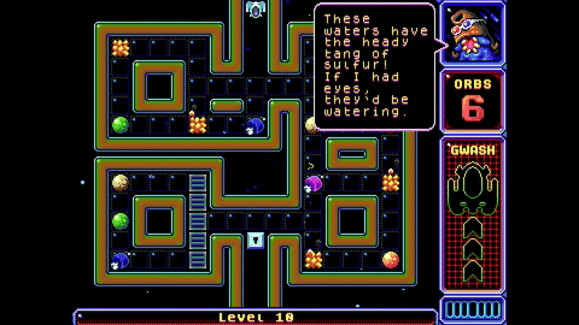 In Horace Hagfish, players engage in a top-down puzzle game that revolves around color mixing and matching. Plan your moves to mix colors, collect orbs, and unlock the exit without generating the color brown.