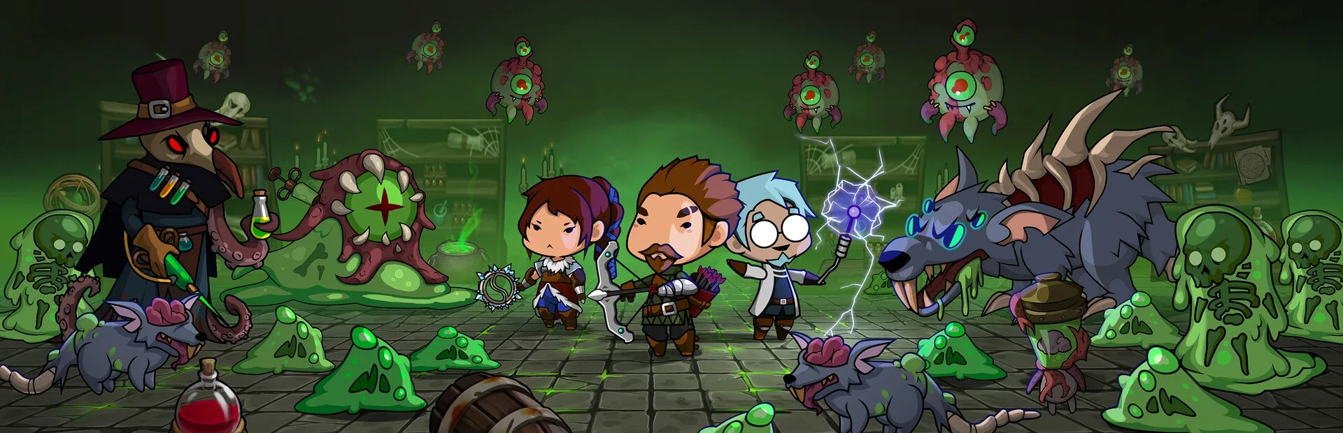 Demolish hordes of enemies and survive against all odds! Unlock different characters, find powerful skill combinations and embark on an exciting journey through the variety of very different worlds in this cute but unforgiving roguelike game!
