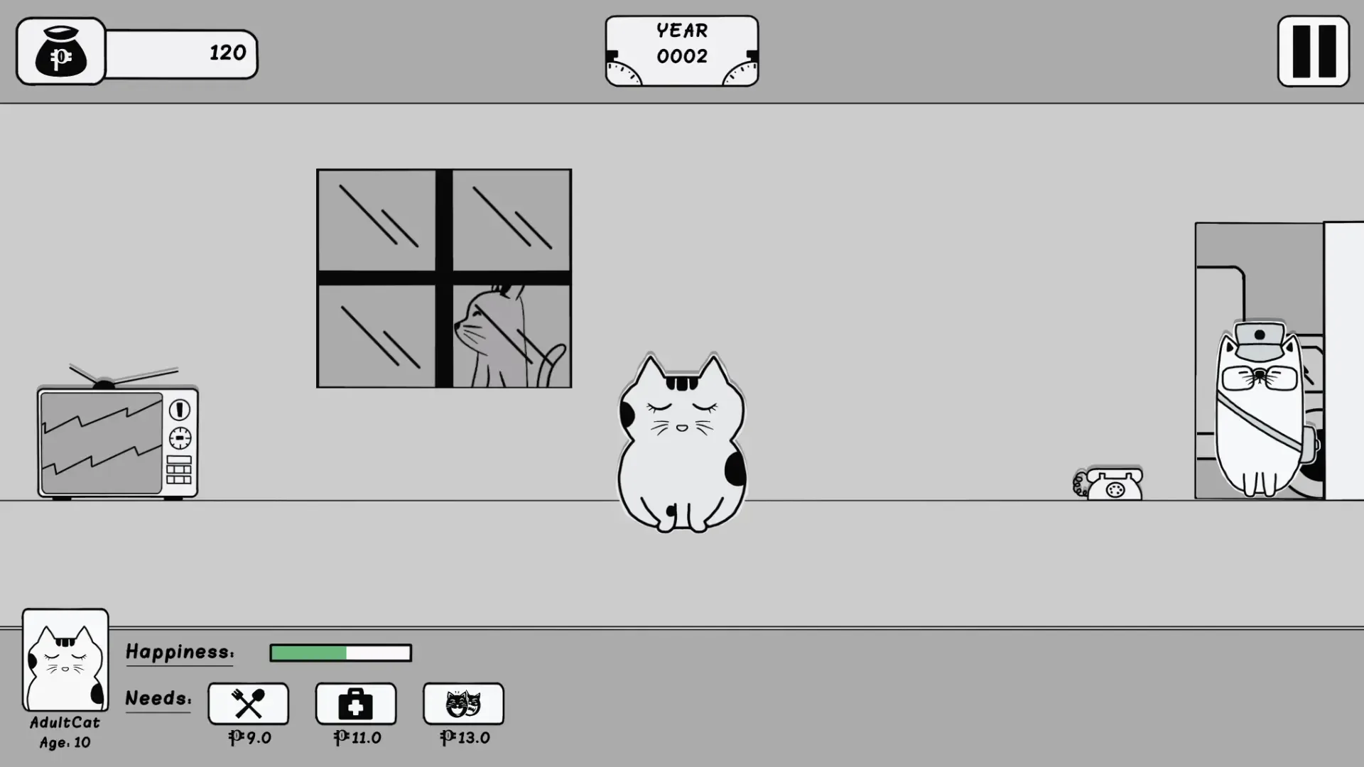 Cat's Vote is a resource management and decision-making simulation where every choice counts. As the head of a feline household, you must ensure your family's happiness by meeting their needs—whether it's electricity/water bills, food, or entertainment. But there's a twist: the price of resources fluctuates based on the decisions of a cat government, and you get to cast your vote in the elections! Every election season, you'll hear promises from candidates claiming they will reduce costs or improve living conditions, but can you trust them? Choose wisely, as the wrong decision could send prices soaring and your family into disarray. Balance your limited budget, make strategic votes, and keep your family satisfied, all while navigating the unpredictable landscape of feline politics. Will you thrive, or will the promises made by smooth-talking candidates lead your family into ruin?