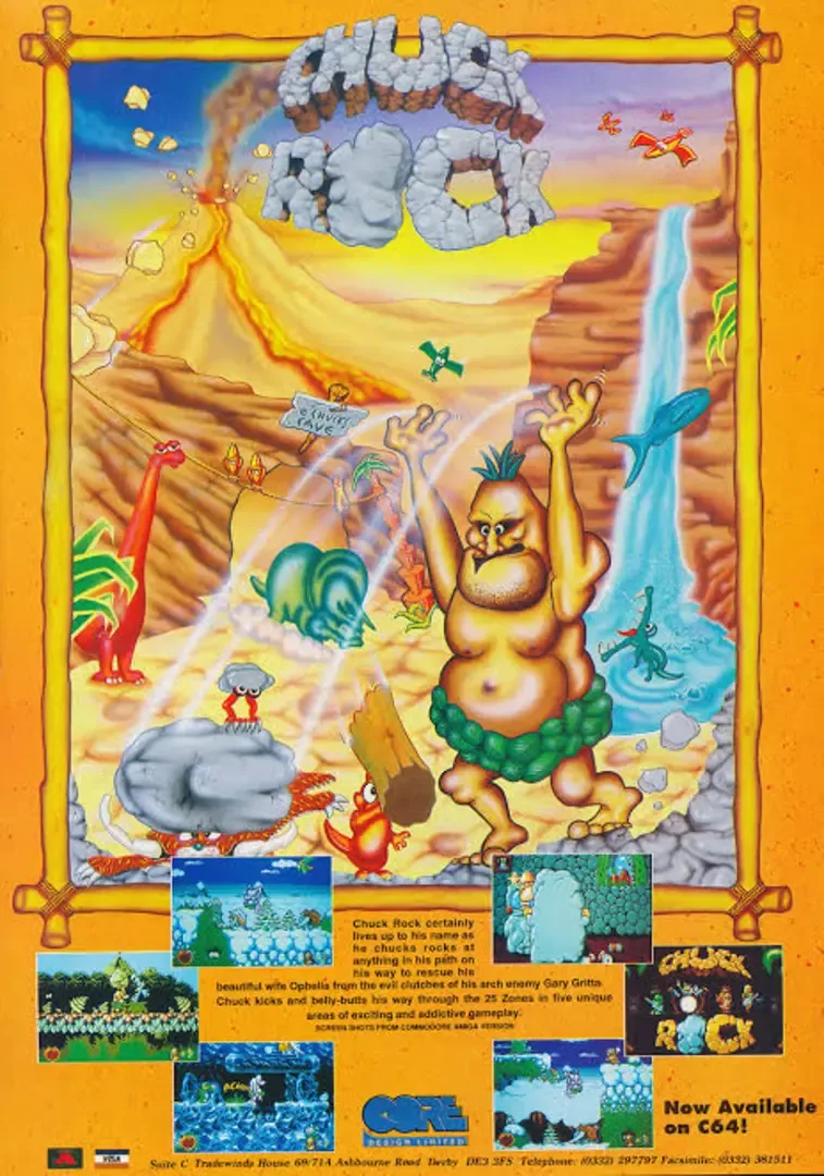 Chuck Rock is a side-scrolling platformer set in a comical Stone Age world. Players control Chuck, a beer-loving caveman who must rescue his kidnapped wife from the village oddball. Armed with his signature belly-buster attack and jump kick, Chuck battles an array of dinosaurs and prehistoric creatures across various levels. The game features a unique mechanic where Chuck can pick up and throw rocks to defeat enemies and reach higher platforms, adding a puzzle element to the platforming action. With its humorous tone and prehistoric setting, Chuck Rock offers a lighthearted and entertaining twist on the classic platformer genre.