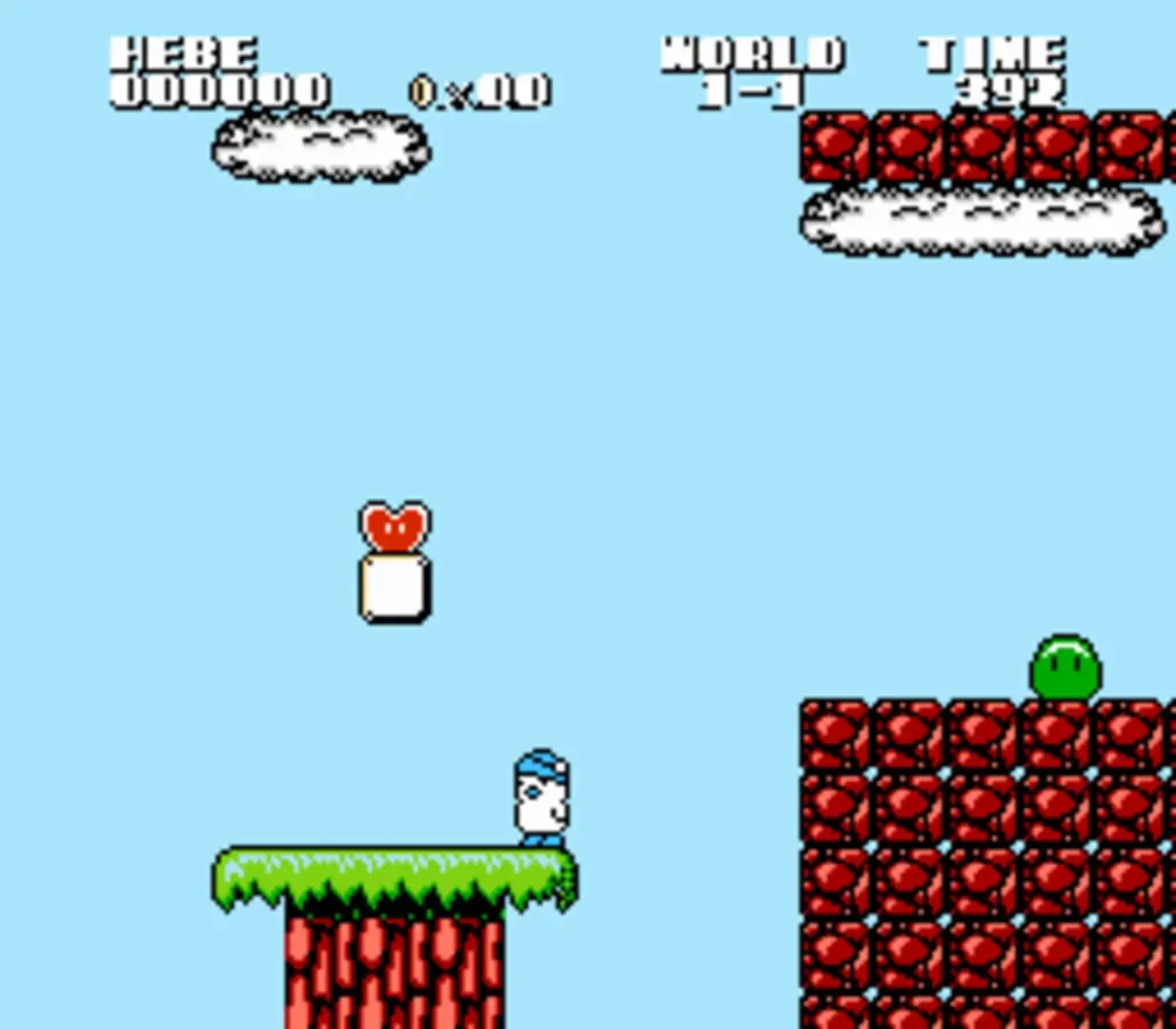 In this hack, you play as Hebe from the Hebereke game series. He goes on a short adventure to rescue one of his friends, O-Chan, who was kidnapped by the Muu Cat. This hack has 5 levels, and it was an entry for the SMB Jam, which got 2nd place, with 11.5 out of 25 points (first place got 15, and another entry got 16.5, but said entry would not go under winners).
