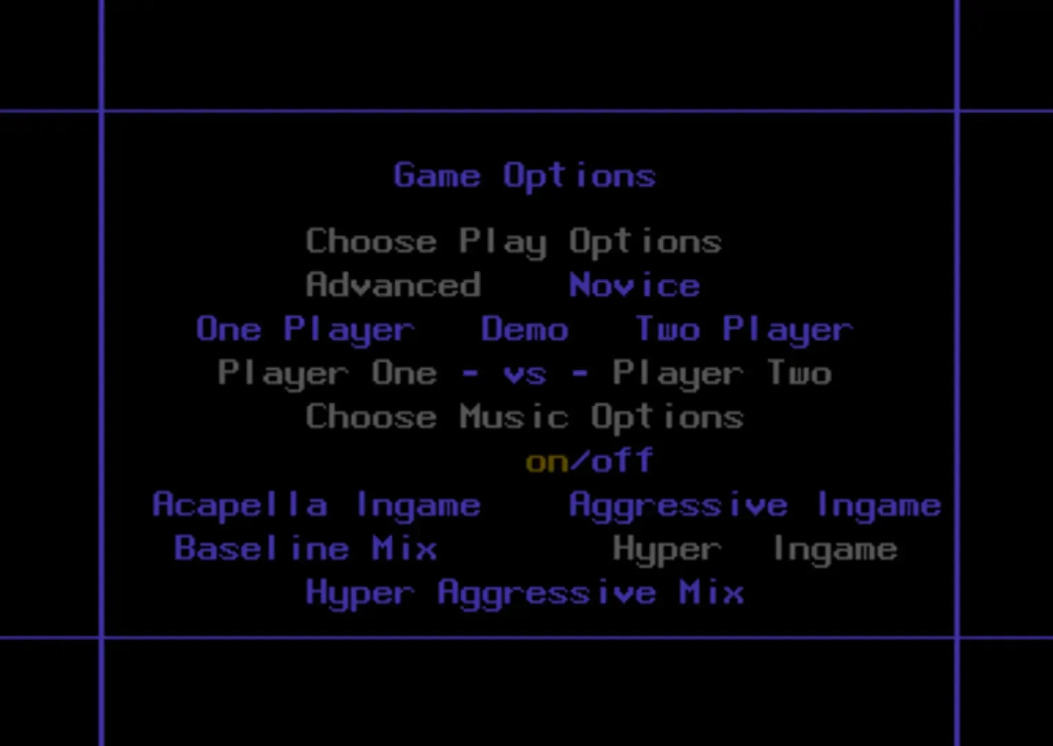 Hyper Aggressive is a strategic puzzle game aiming to provide some sensitivity for the binary numeral system. The playing area mainly consists of fields coloured in red or blue (the colours of the players) or grey (neutral areas). These fields are either numbered 0 or 1. The goal is to switch fields numbered 0 faster to 1 than your opponent does, using binary operands like EOR, ORA or AND. Since the game follows binary patterns, changing the value of one field will also affect the neighbouring values...