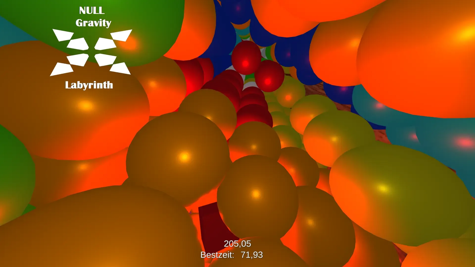 Find the golden cube to exit this abstract labyrinth. When touching a spinning cube all elements with the same color will disappear and new paths will form. When you touch a portal it will teleport you to another portal of the same color.